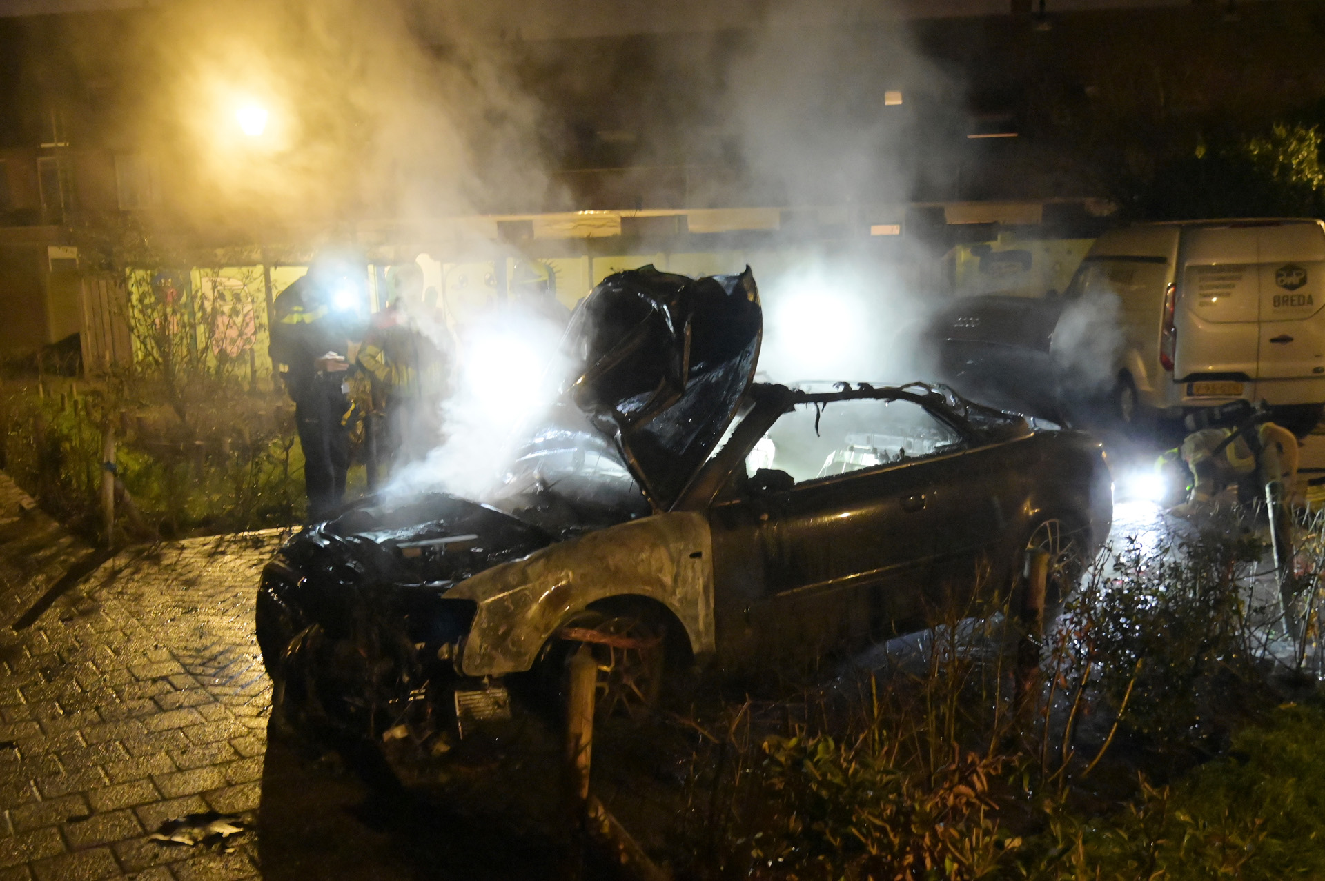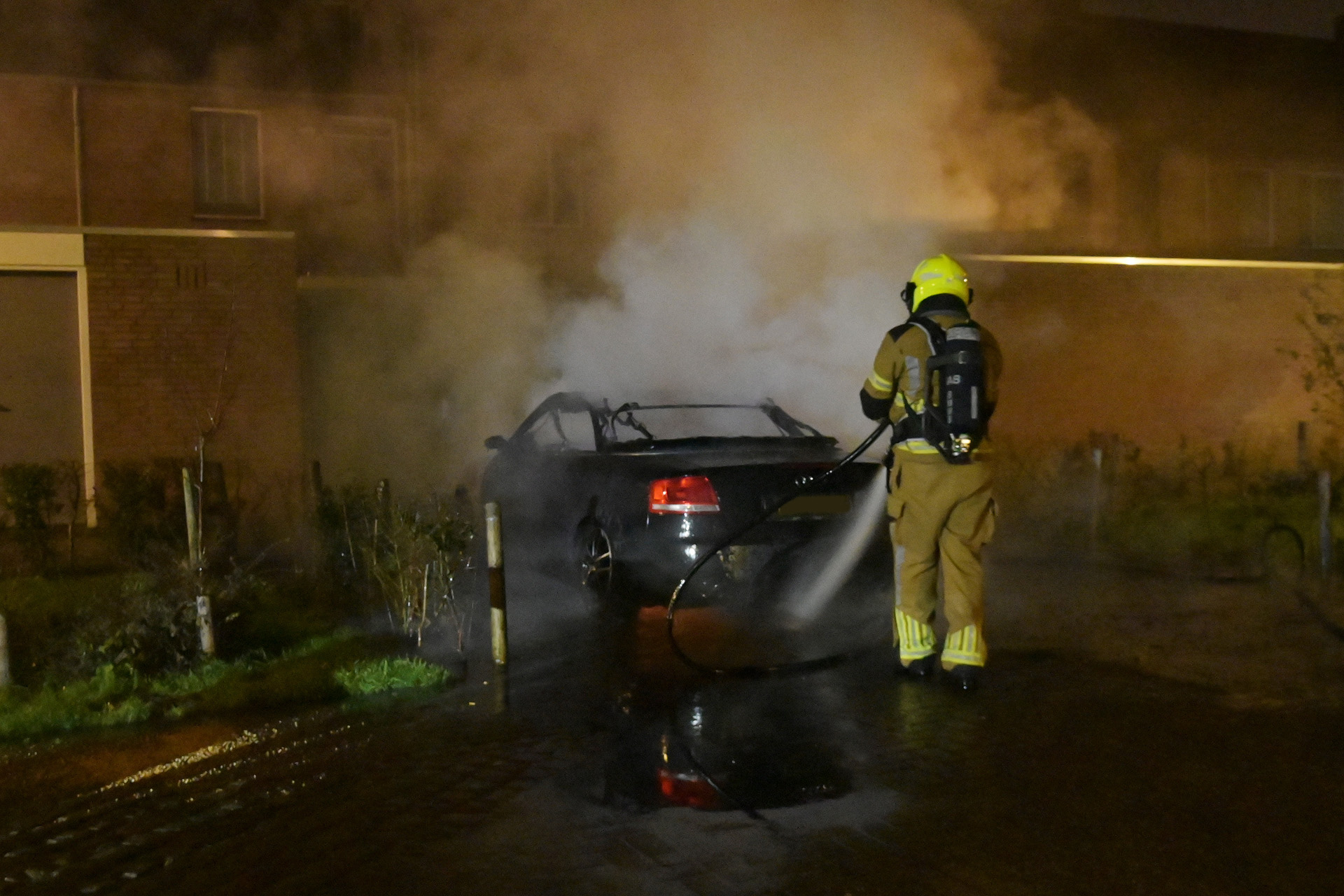 Omwonenden meldden dat zij voorafgaand aan de brand een harde knal hoorden, waarna ze vlammen zagen en direct de hulpdiensten inschakelden. De auto stond bij aankomst van de brandweer al in lichterlaaie.