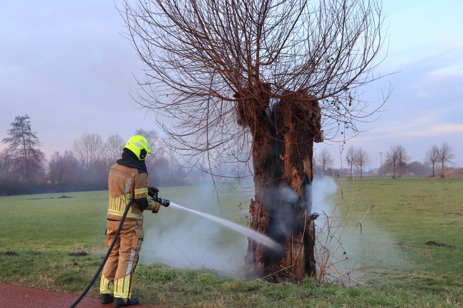 Geplaatst op 19 januari 2026, om 20:20 uurSPRANG-CAPELLE – De brandweer is maandagmiddag uitgerukt voor een buitenbrand aan de Oudestraat in Sprang-Capelle, waar een knotwilg langs het fietspad in brand stond.
