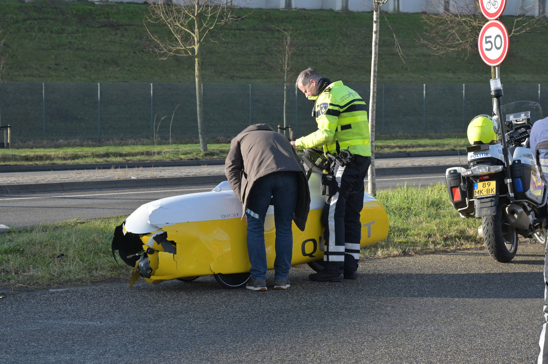 De man op de ligfiets werd na de botsing onderzocht in een ambulance. Over de ernst van zijn verwondingen is niets bekend. De automobilist bleef ongedeerd, maar was zichtbaar geschrokken.