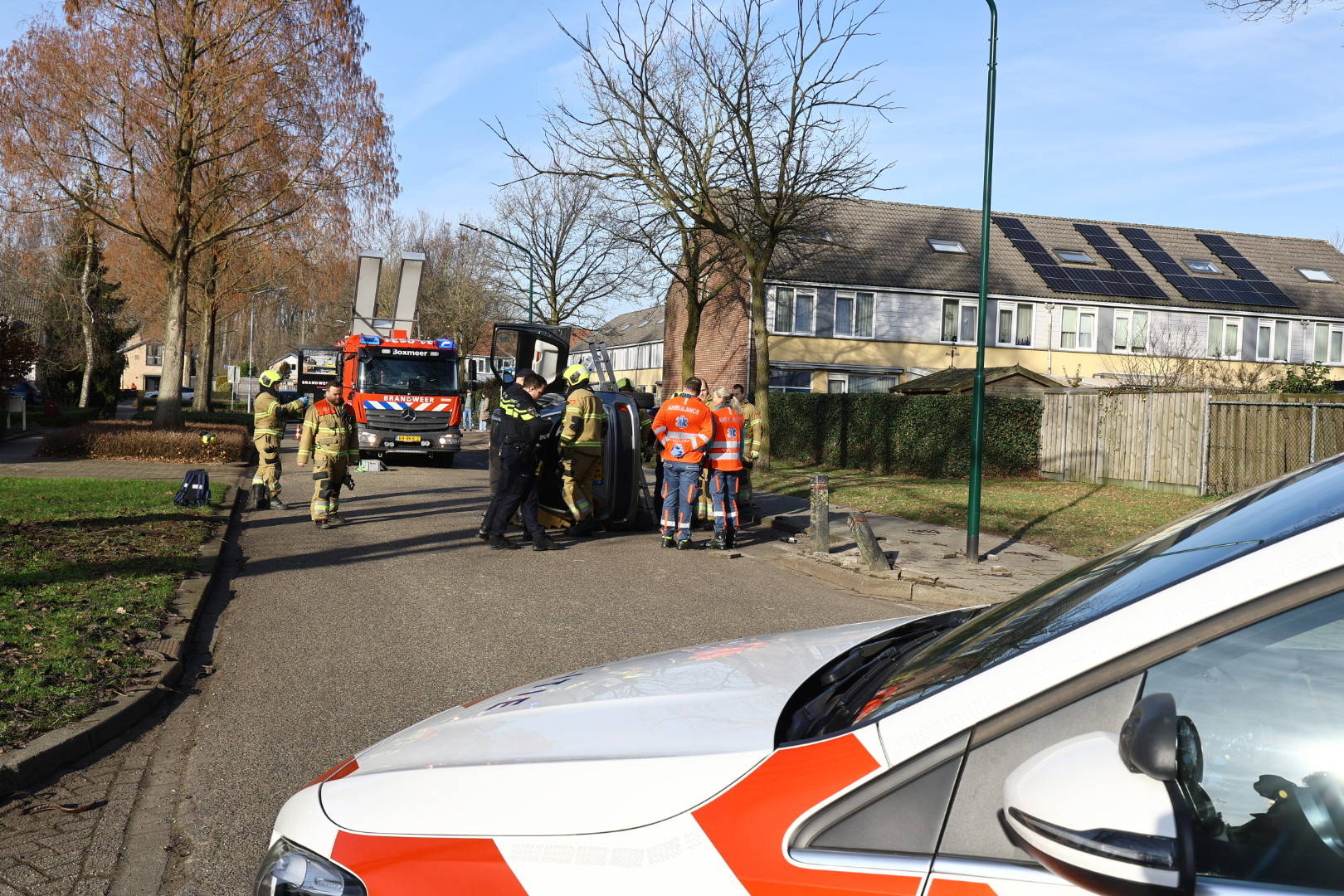 Geplaatst op 22 januari 2026, om 14:11 uurBOXMEER – Aan de kruising van de Piet Heinstraat en de Karel Doormanstraat in Boxmeer is donderdag een auto tegen een wegversmalling gereden en vervolgens op zijn zijkant terechtgekomen. Hulpdiensten rukten massaal uit naar de locatie van het ongeval.