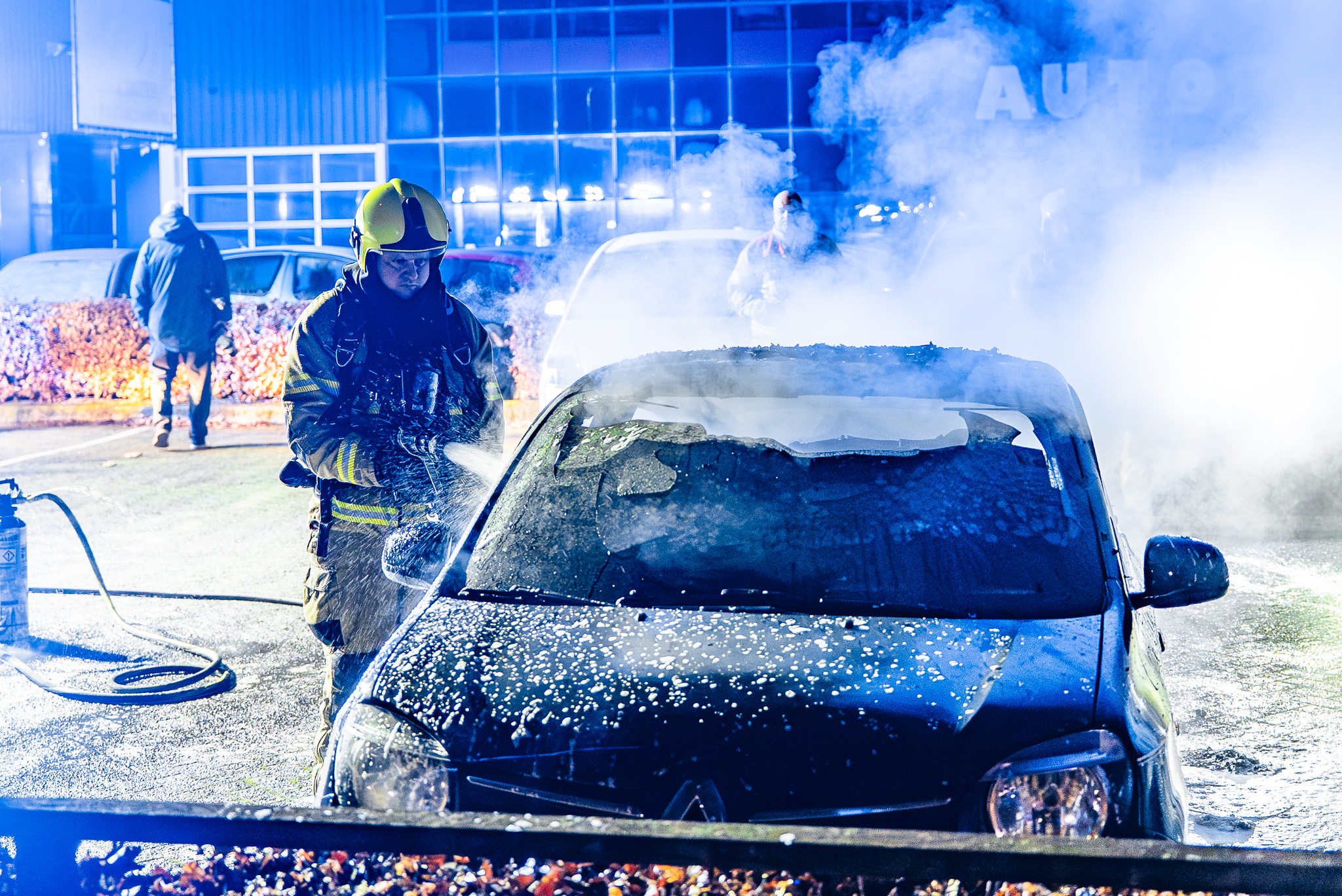 OSS – In de nacht van zondag op maandag is rond 01.15 uur een auto in vlammen opgegaan op de parkeerplaats van Autopark Brabant aan de Parallelweg in Oss. De brandweer kwam met een tankautospuit en een schuimblusvoertuig ter plaatse om het vuur te bestrijden.