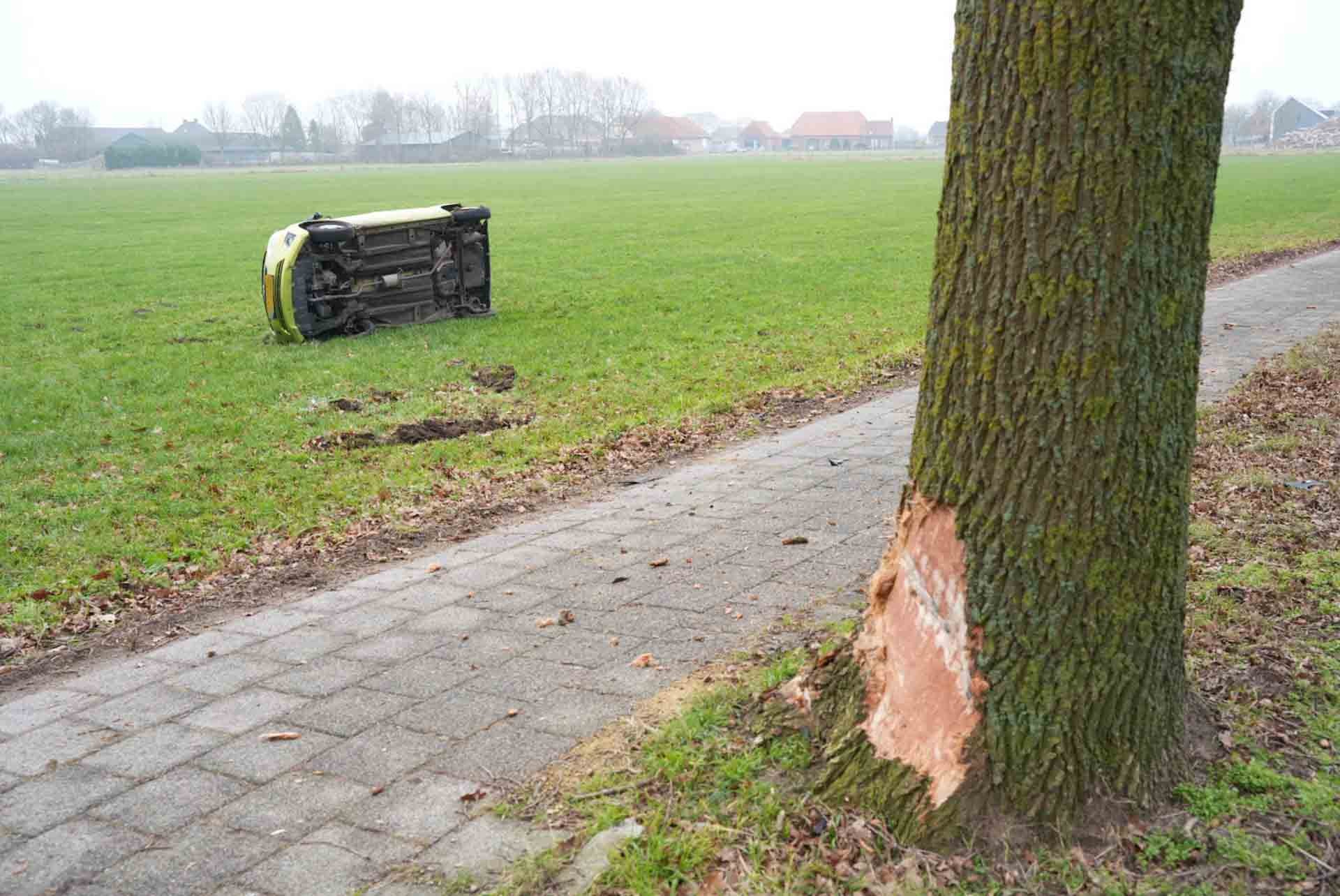 HERPT – Op de Heusdenseweg in Herpt is dinsdagochtend rond 09.30 uur een automobiliste met haar voertuig van de weg geraakt. De auto botste tegen een boom, sloeg om en kwam uiteindelijk in een weiland op de zijkant tot stilstand.