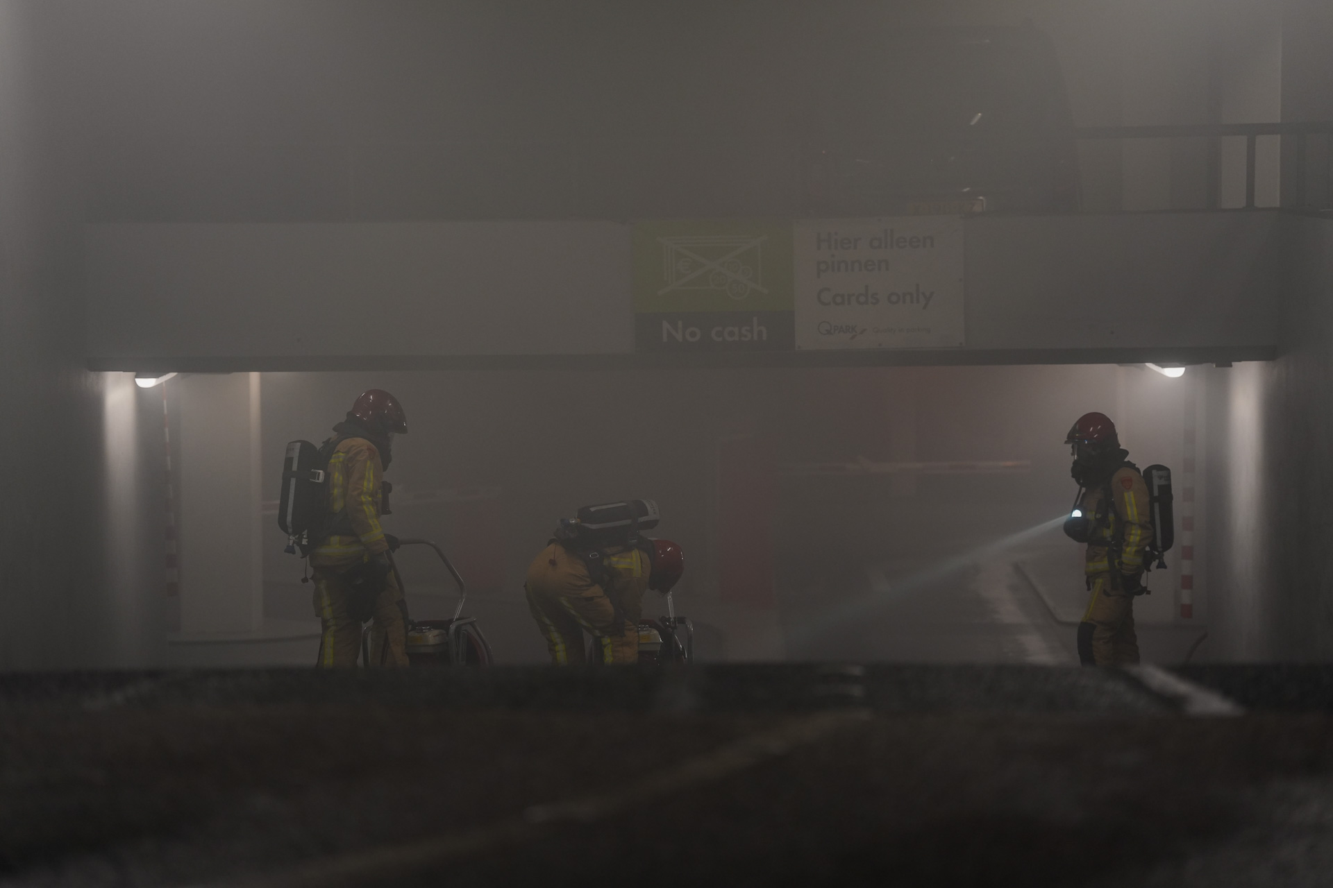 De brandweer heeft met ventilatoren de rook uit de parkeergarage en de bovengelegen verdiepingen te verdrijven.