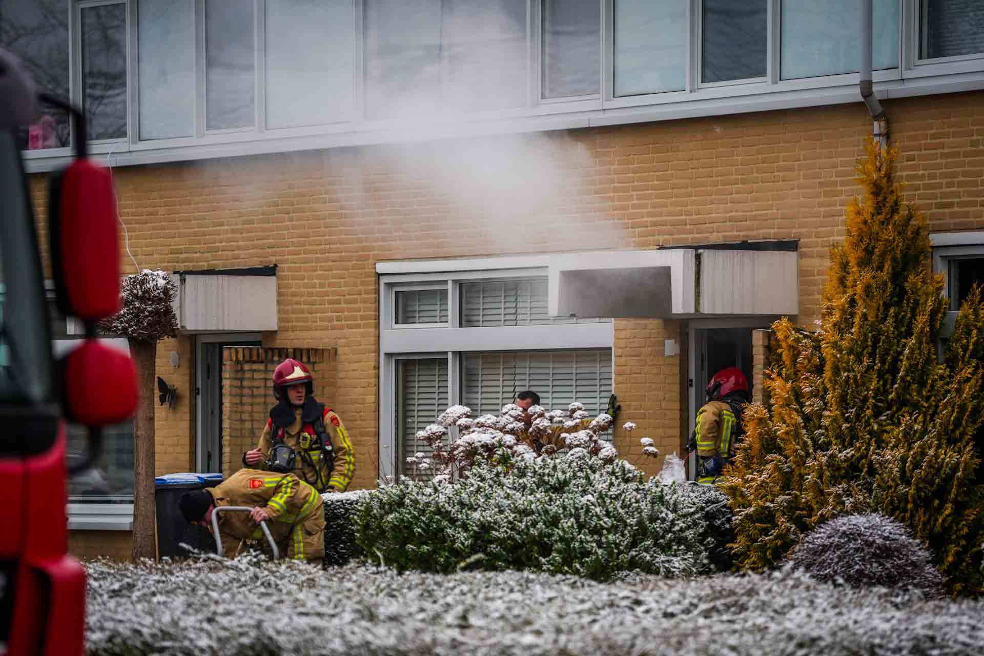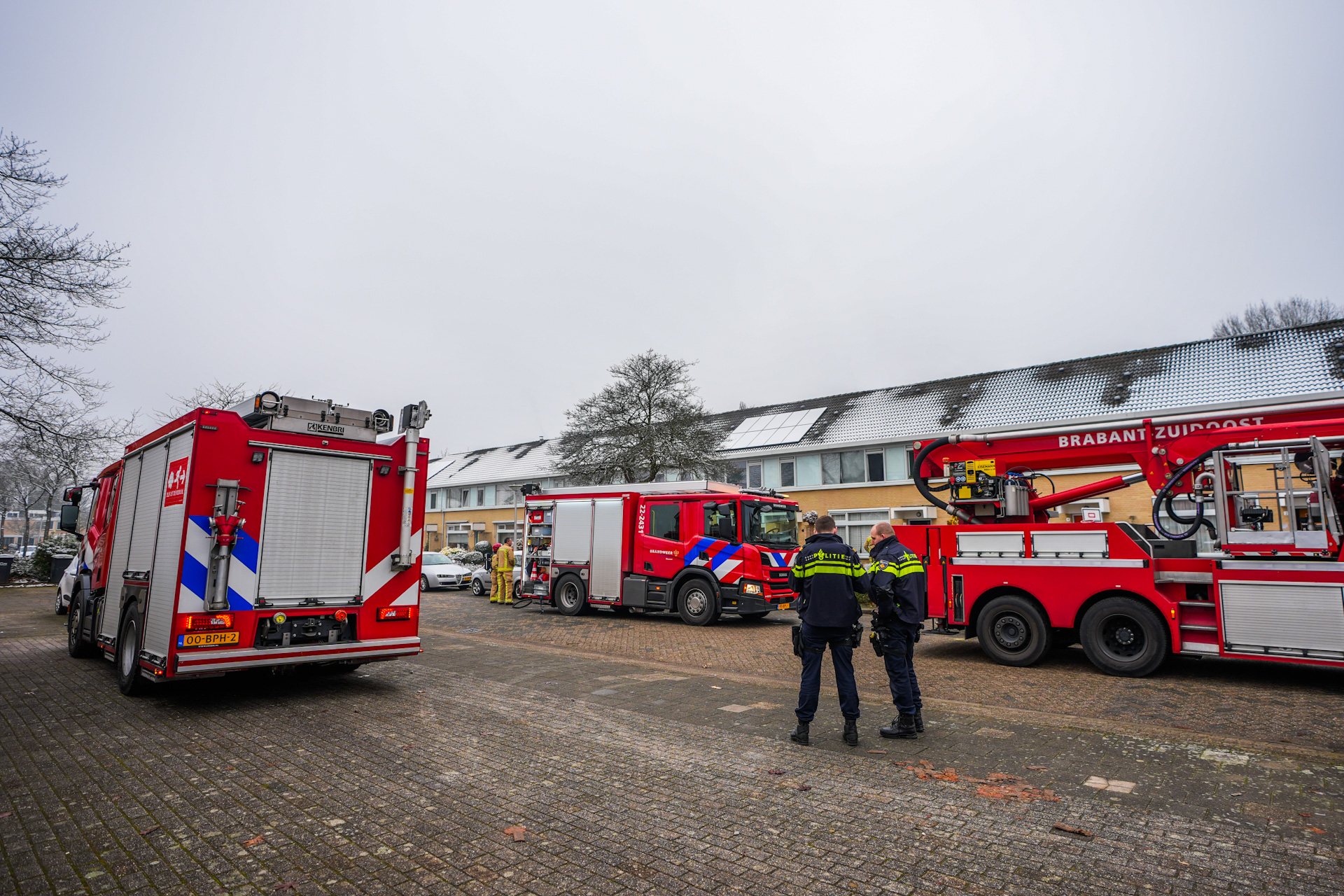 De brandweer rukte uit met twee blusvoertuigen en een hoogwerker. De politie sloot de straat af om hulpdiensten de ruimte te geven. Na het blussen is de woning geventileerd, en ook de aangrenzende woningen zijn gecontroleerd op rookontwikkeling.