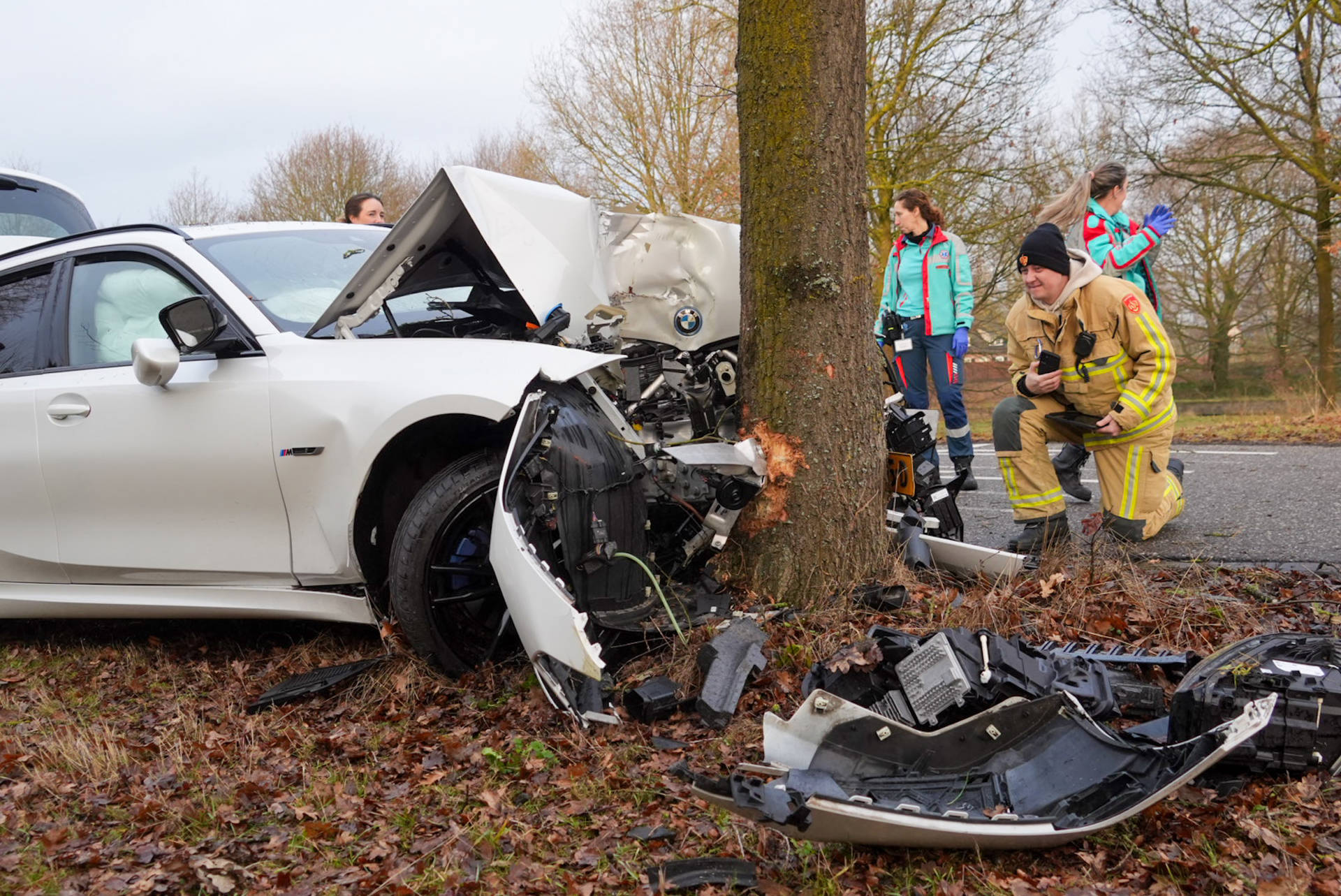 Het ongeval gebeurde nadat de bestuurder vermoedelijk eerst in de berm terechtkwam en vervolgens de macht over het stuur verloor. De auto botste daarna tegen een boom. De man kon met hulp van een aanwezige huisarts en ambulancepersoneel zelf naar de ambulance lopen.