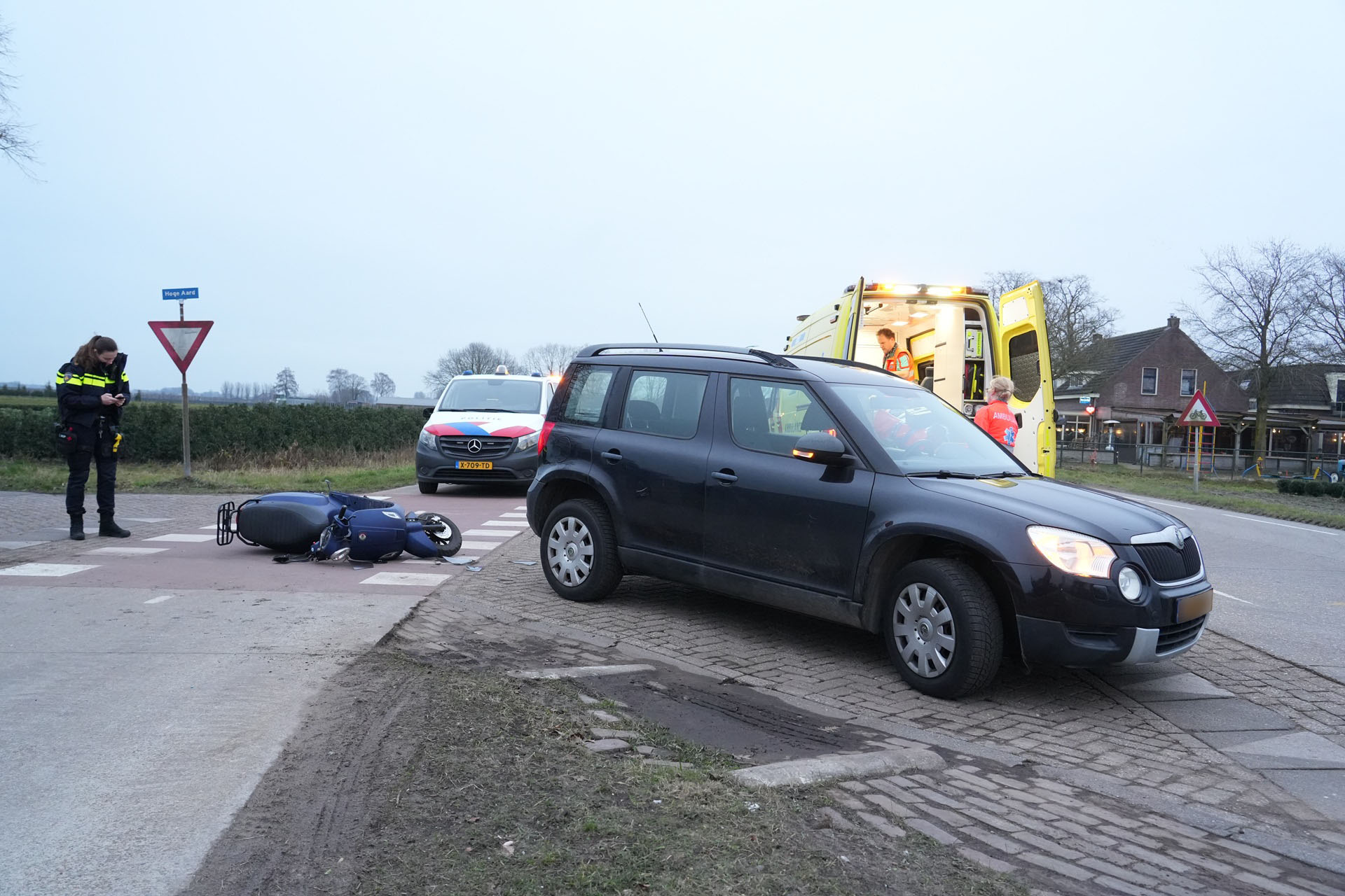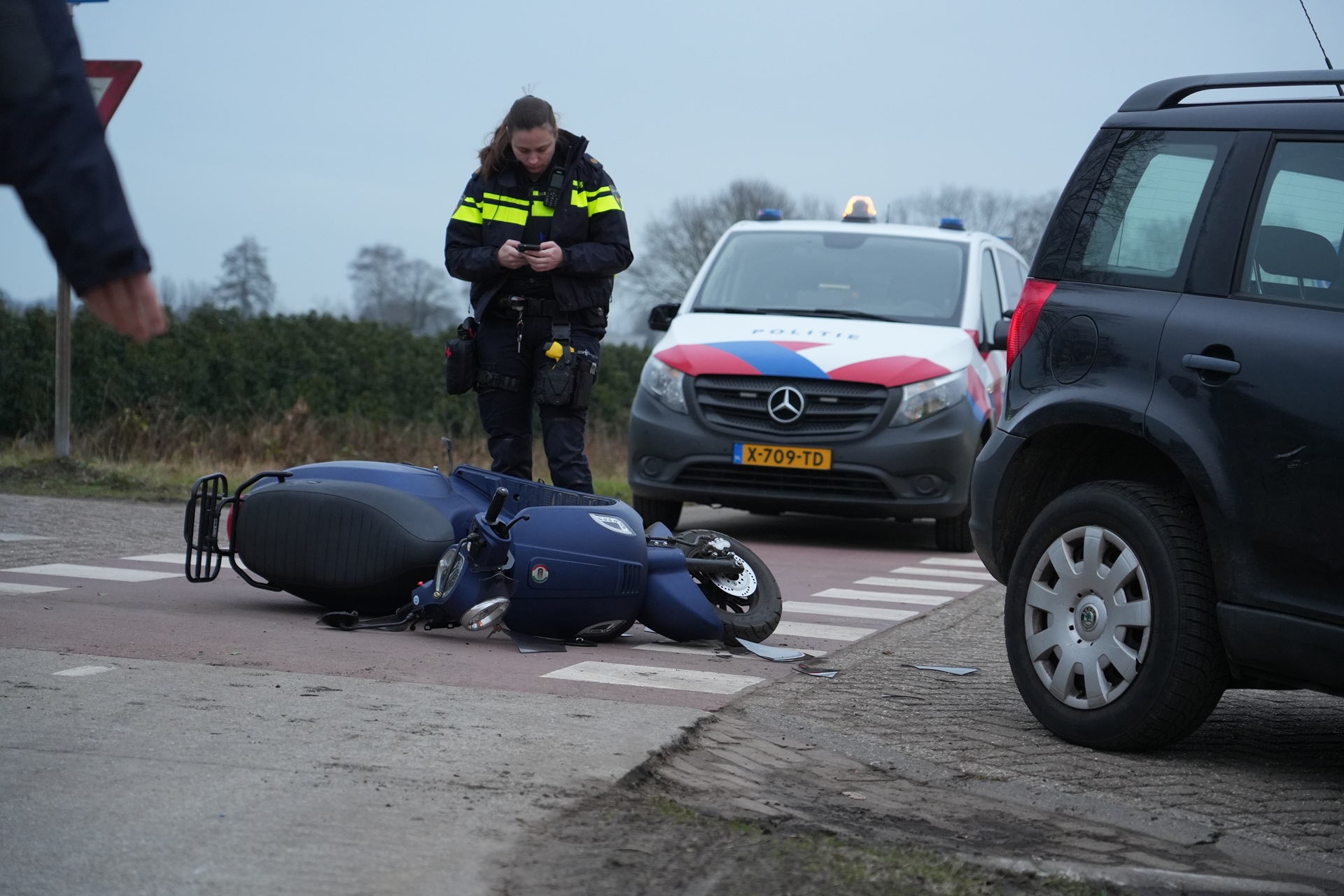 Het incident gebeurde donderdagmiddag rond 17.10 uur. Hulpdiensten kwamen ter plaatse om medische zorg te verlenen, waarna de gewonde scooterrijder per ambulance naar het ziekenhuis is vervoerd.