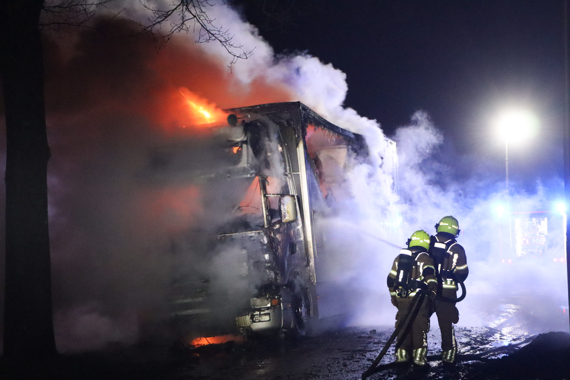 De brand werd omstreeks 23.20 uur gemeld. Bij aankomst van de hulpdiensten stond de vrachtwagen al volledig in lichterlaaie. De brandweer heeft geruime tijd ingezet om het vuur onder controle te krijgen en het voertuig na te blussen. Van de vrachtwagen bleef vrijwel niets over.