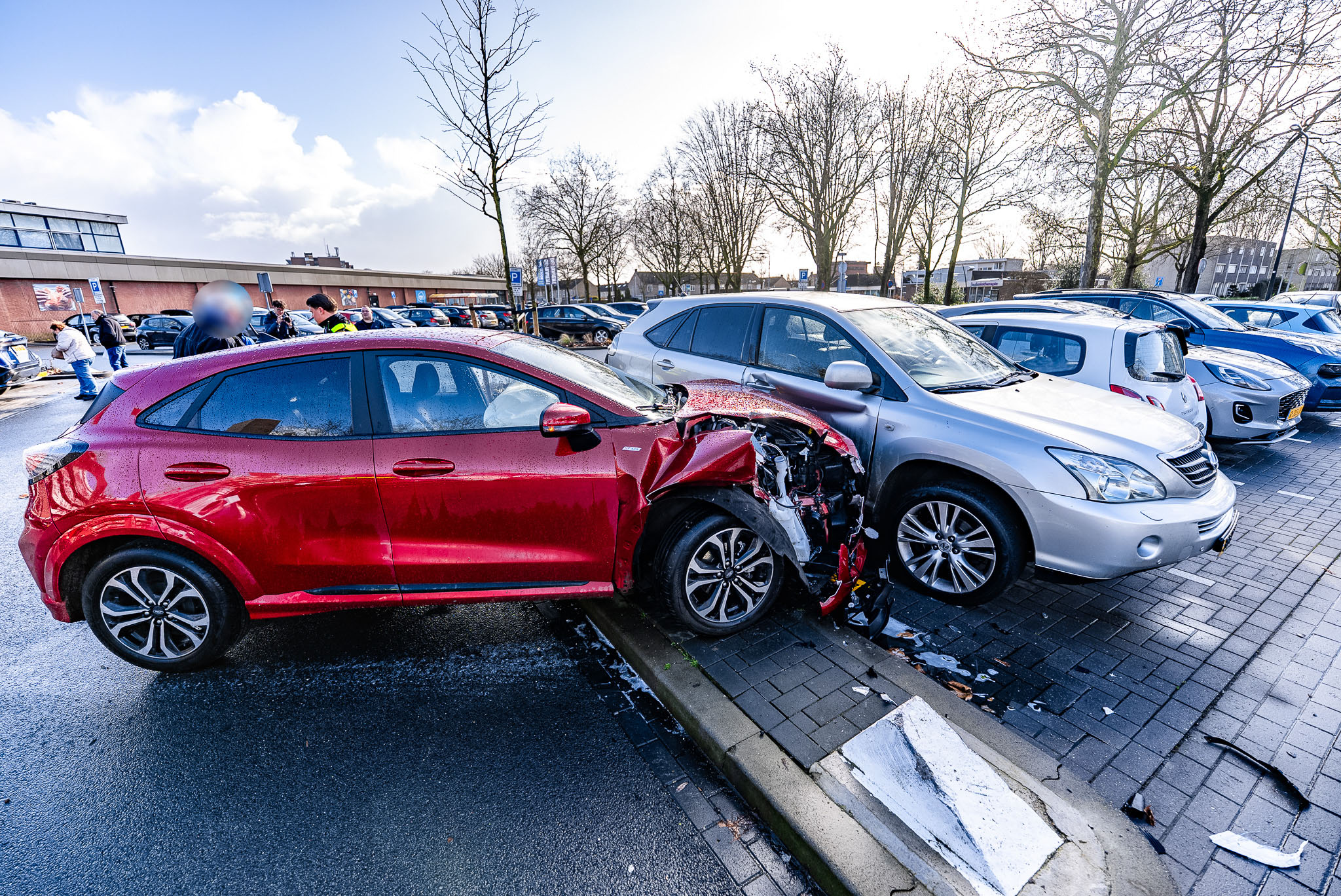 Een automobilist wilde wegrijden vanaf een parkeerplaats, maar trapte vermoedelijk het verkeerde pedaal in. Hierdoor schoot de auto hard vooruit en botste tegen een passerende auto. Dit voertuig liep schade op aan de rechterzijkant en achterzijde.