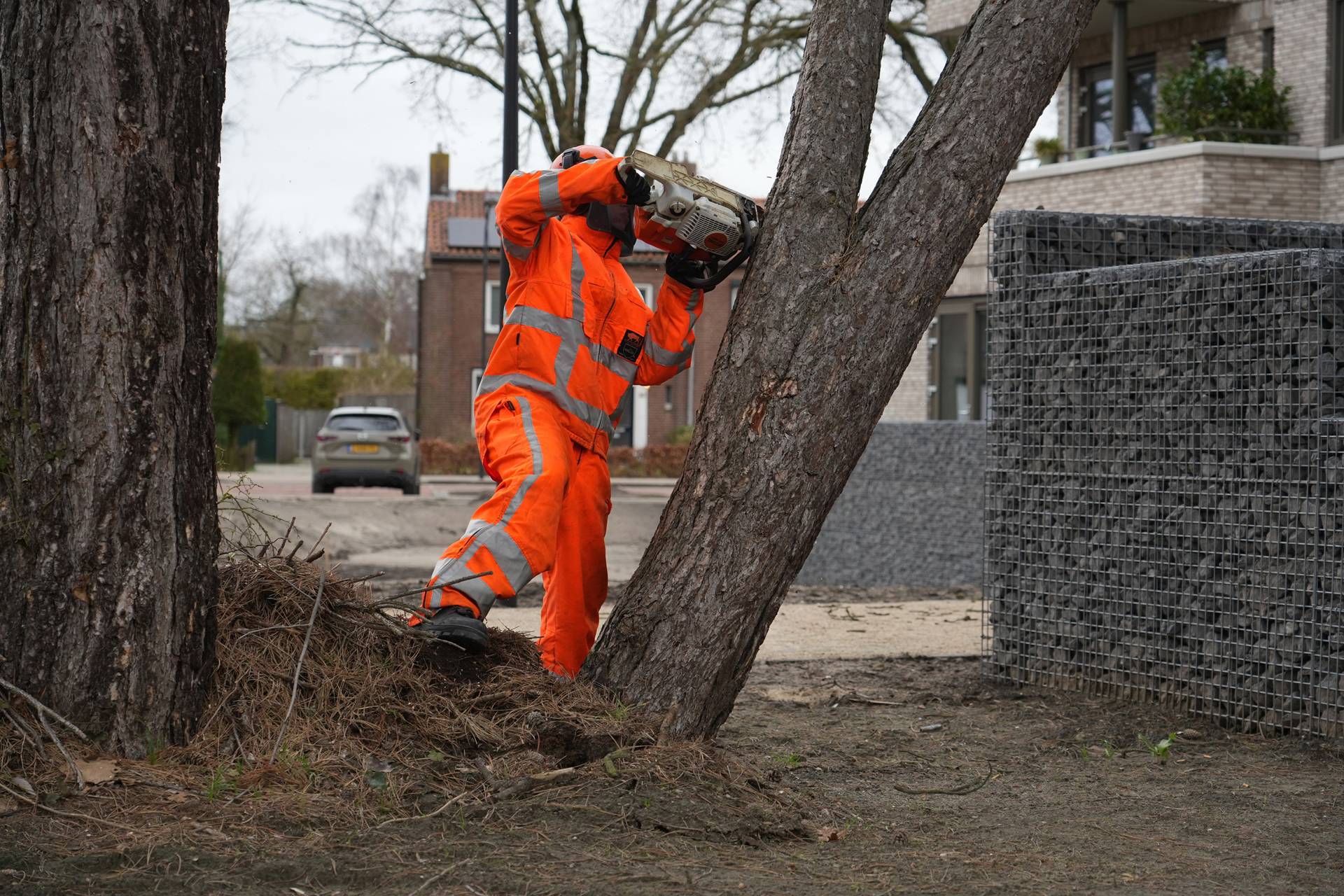 Het resterende deel wordt weggehaald door een gespecialiseerd bedrijf. De hoogwerker van de brandweer kon niet worden gebruikt omdat deze door de afstand niet dicht genoeg bij de boom kon komen. Over eventuele schade aan de woning is niets nader bekendgemaakt.