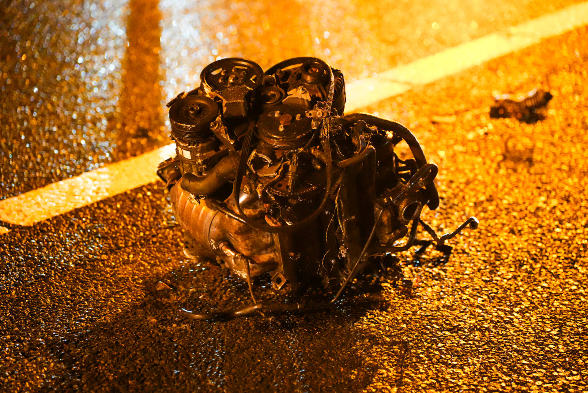 Door de impact en het tollen van het voertuig werd het motorblok uit de auto geslingerd. Dit kwam terecht op de rijbaan in de tegenovergestelde richting, richting Raamsdonkveer. Twee automobilisten konden het motorblok niet meer ontwijken en liepen daardoor forse schade op aan hun voertuigen. Op de rijbaan waar het eerste voertuig crashte, raakte nog een andere auto beschadigd door rondvliegende onderdelen. In totaal waren vier voertuigen bij het ongeval betrokken.