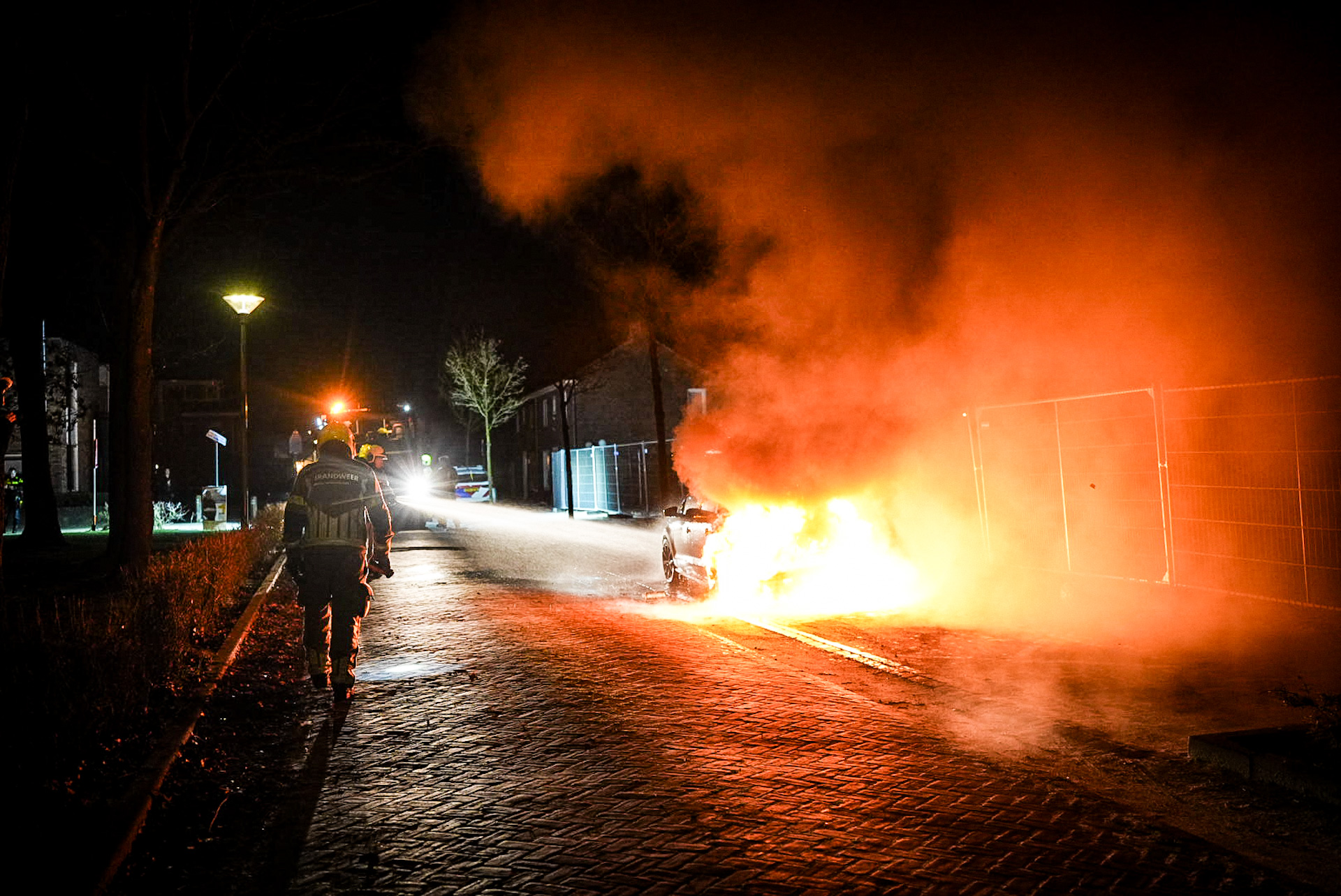 Bij aankomst van de brandweer stond het voertuig aan zowel de voor- als achterzijde in brand. Rondom de auto lagen meerdere flessen met brandstof en op het trottoir werden aanmaakblokjes aangetroffen. Ondanks snelle inzet brandde de auto volledig uit.