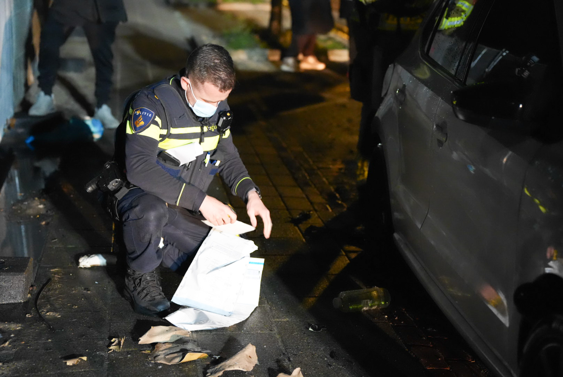 De politie is direct een onderzoek gestart en heeft in de omgeving gezocht naar mogelijke verdachten. De aangetroffen flessen en aanmaakblokjes zijn veiliggesteld voor sporenonderzoek. De eigenaresse was ter plaatse en heeft aangifte gedaan. Het uitgebrande voertuig wordt later geborgen.
