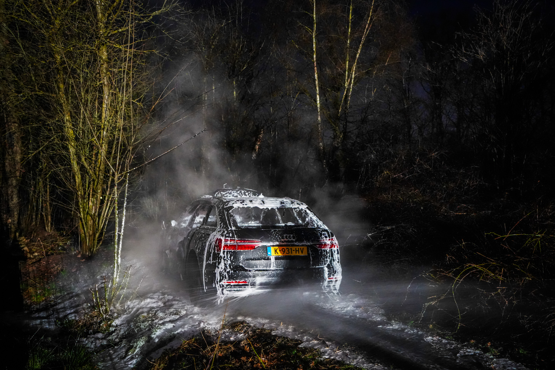 Bij aankomst van de brandweer stond de auto volledig in brand. Vermoedelijk is het voertuig gedumpt en vervolgens in brand gestoken. Het betreft een Audi A6 Avant 45 TFSI Quattro Sport S Line Edition met een geschatte waarde van circa 95.000 euro. De brandweer kwam met een blusvoertuig en extra watervoorziening ter plaatse. De locatie bleek lastig bereikbaar, omdat het natuurgebied niet toegankelijk is voor autoβs en de paden zijn afgesloten met paaltjes. De brandweer moest omrijden en het laatste deel te voet afleggen. Hoe de auto op het smalle zandpad terechtkwam, is niet duidelijk.