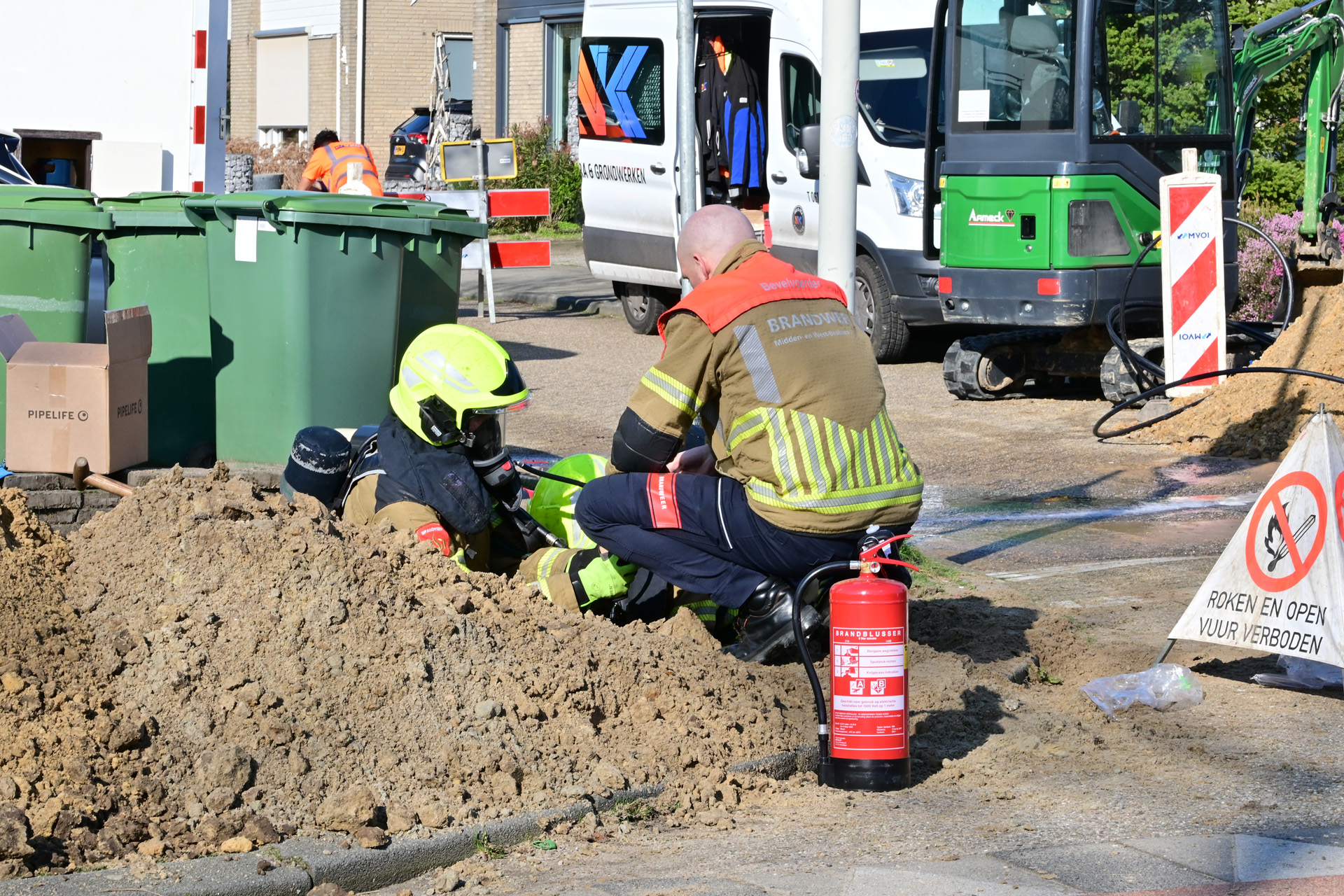 Gasleiding kapot getrokken tijdens graafwerkzaamheden