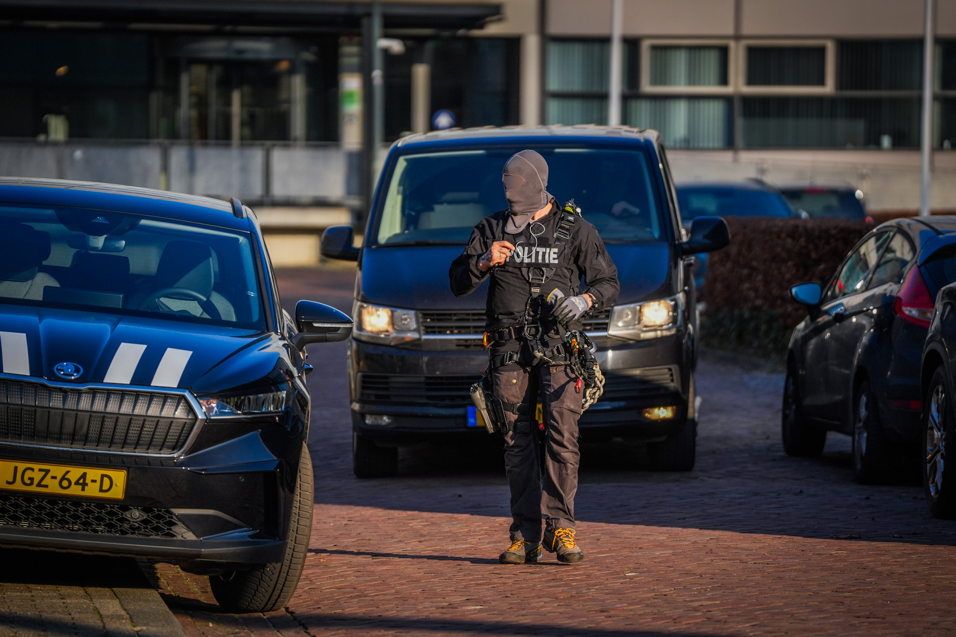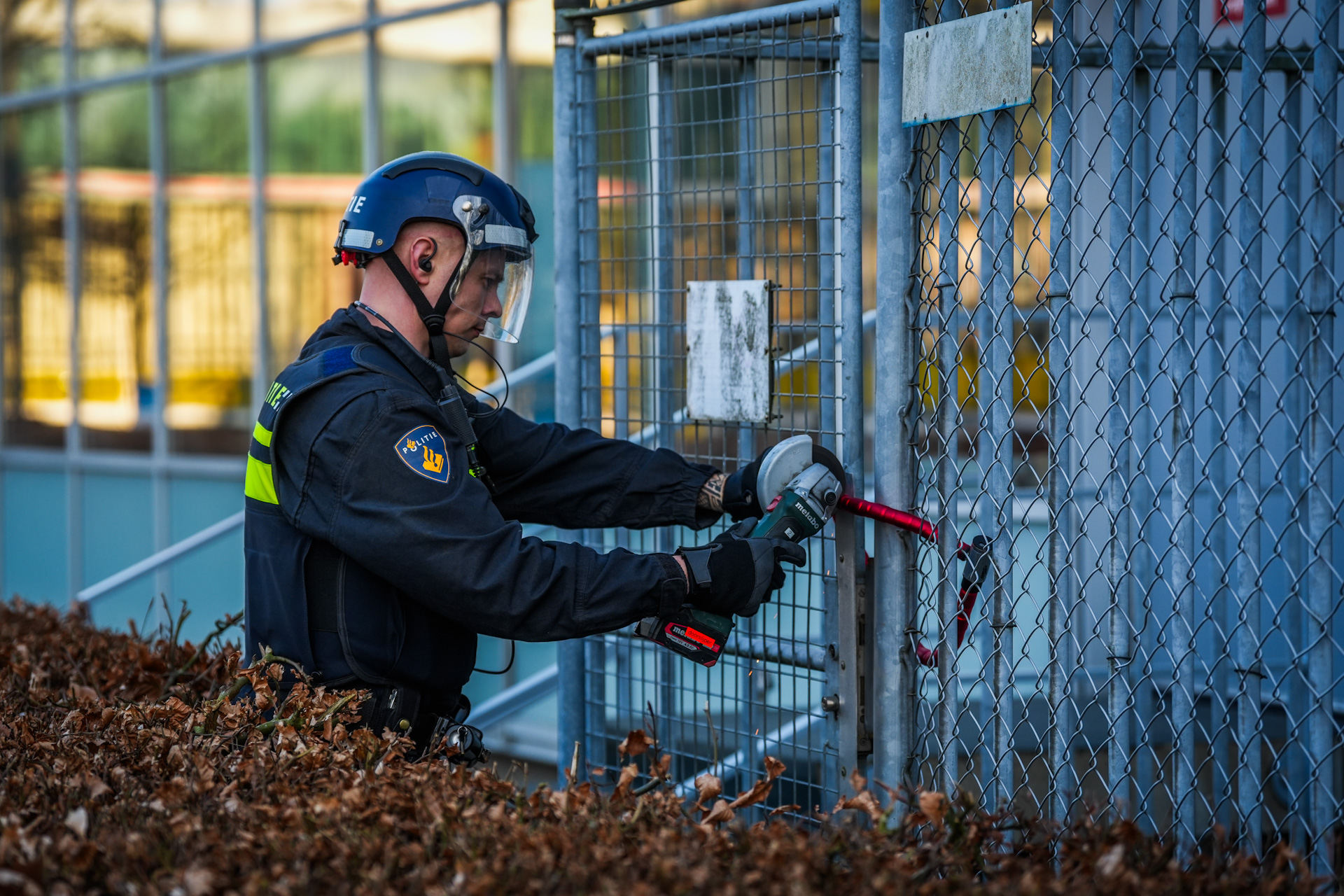 Rond 16.30 uur zaten de demonstranten nog vastgeketend op het dak toen meerdere eenheden het dak betraden. Onder meer de Dienst Speciale Interventies (DSI), de Ondersteuningsgroep (OG), de Technische Eenheid (TE) uit Amsterdam, een droneteam van de landelijke eenheid, een sectie Mobiele Eenheid en diverse agenten en beveiligers werden ingezet. De politie vorderde de groep om het dak te verlaten en kondigde aan over te gaan tot aanhouding bij weigering. Vervolgens werden de sloten waarmee nooddeuren en de toegang tot de vluchttrap waren afgesloten, doorgeslepen.