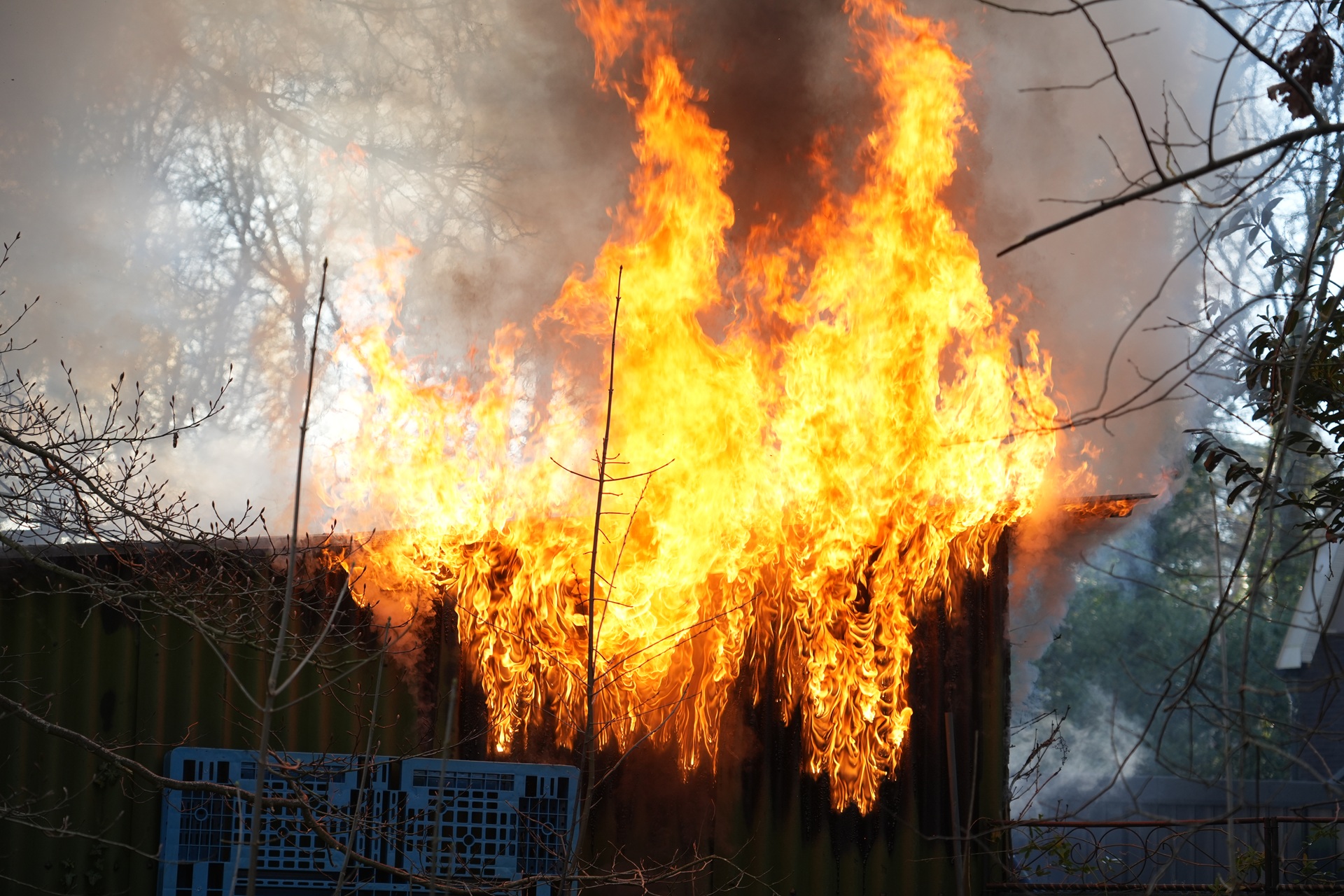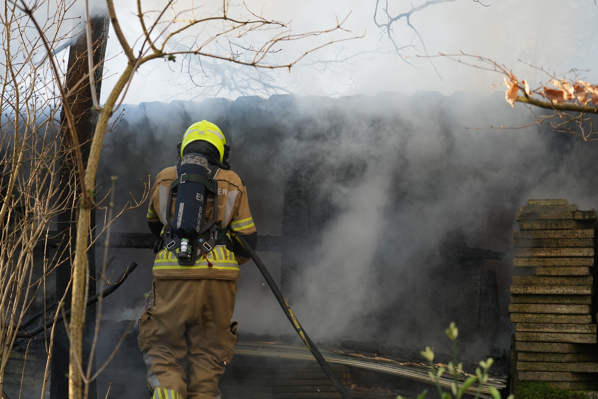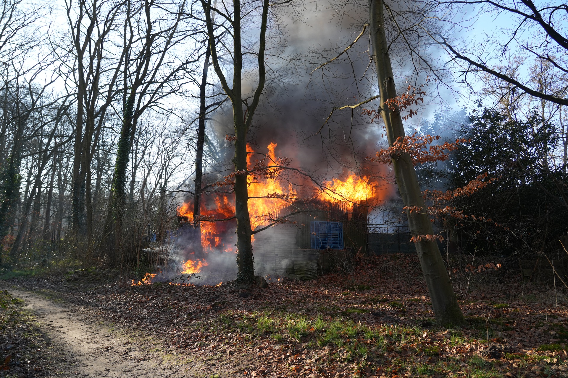 Bij aankomst van de brandweer stond de schuur al volledig in lichterlaaie. De brandweer kwam met meerdere voertuigen ter plaatse, waaronder een extra waterwagen, om het vuur te bestrijden.