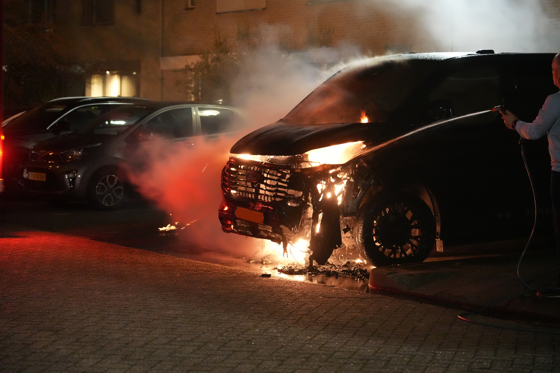 Bedrijfswagen uitgebrand, gasfles in veiligheid gebracht