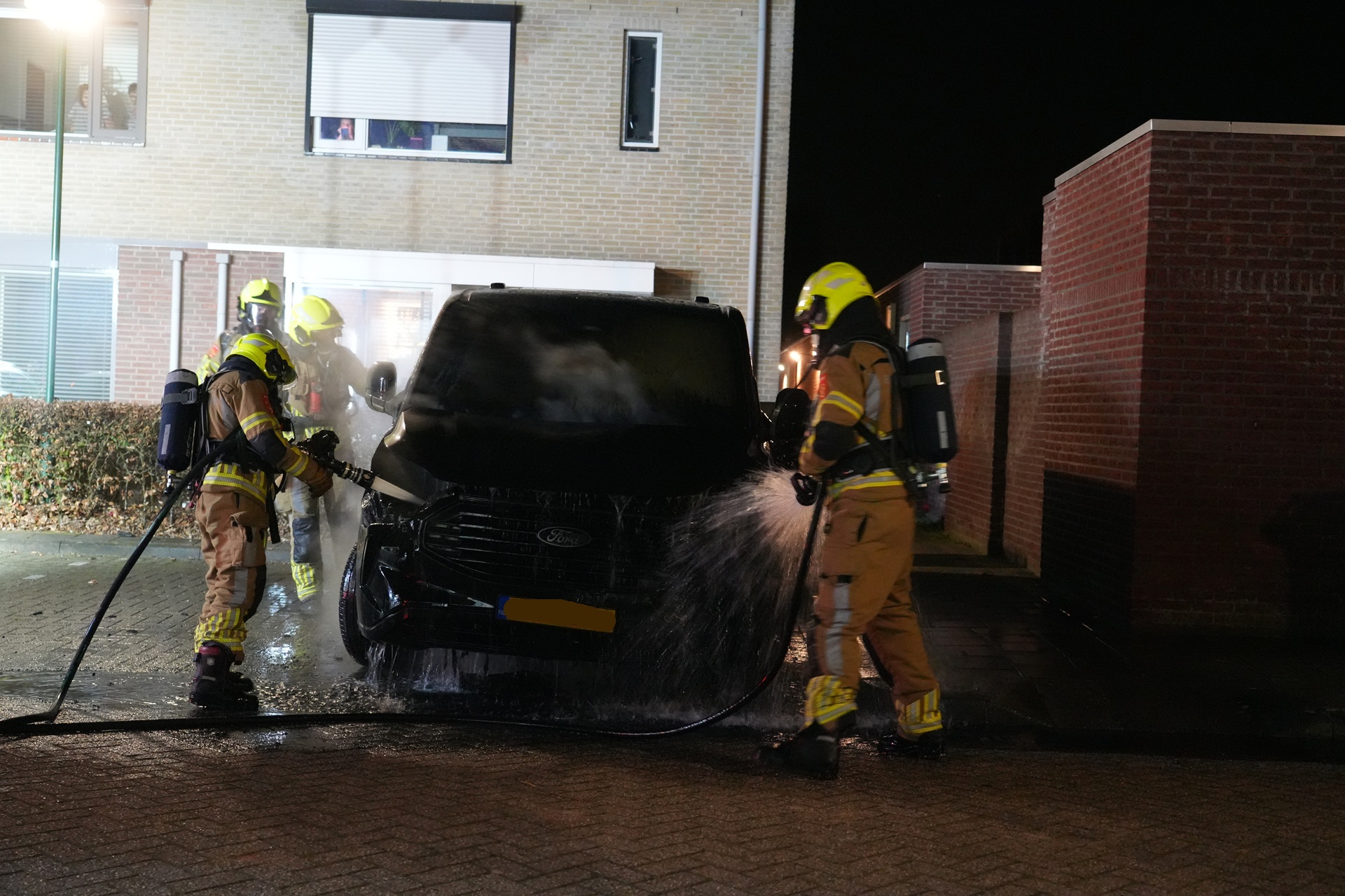 Omstanders waren al begonnen met blussen voordat de brandweer arriveerde. De brandweer had het vuur snel onder controle, maar kon niet voorkomen dat het voertuig zwaar beschadigd raakte. Ook werd een gasfles uit de bus veiliggesteld.