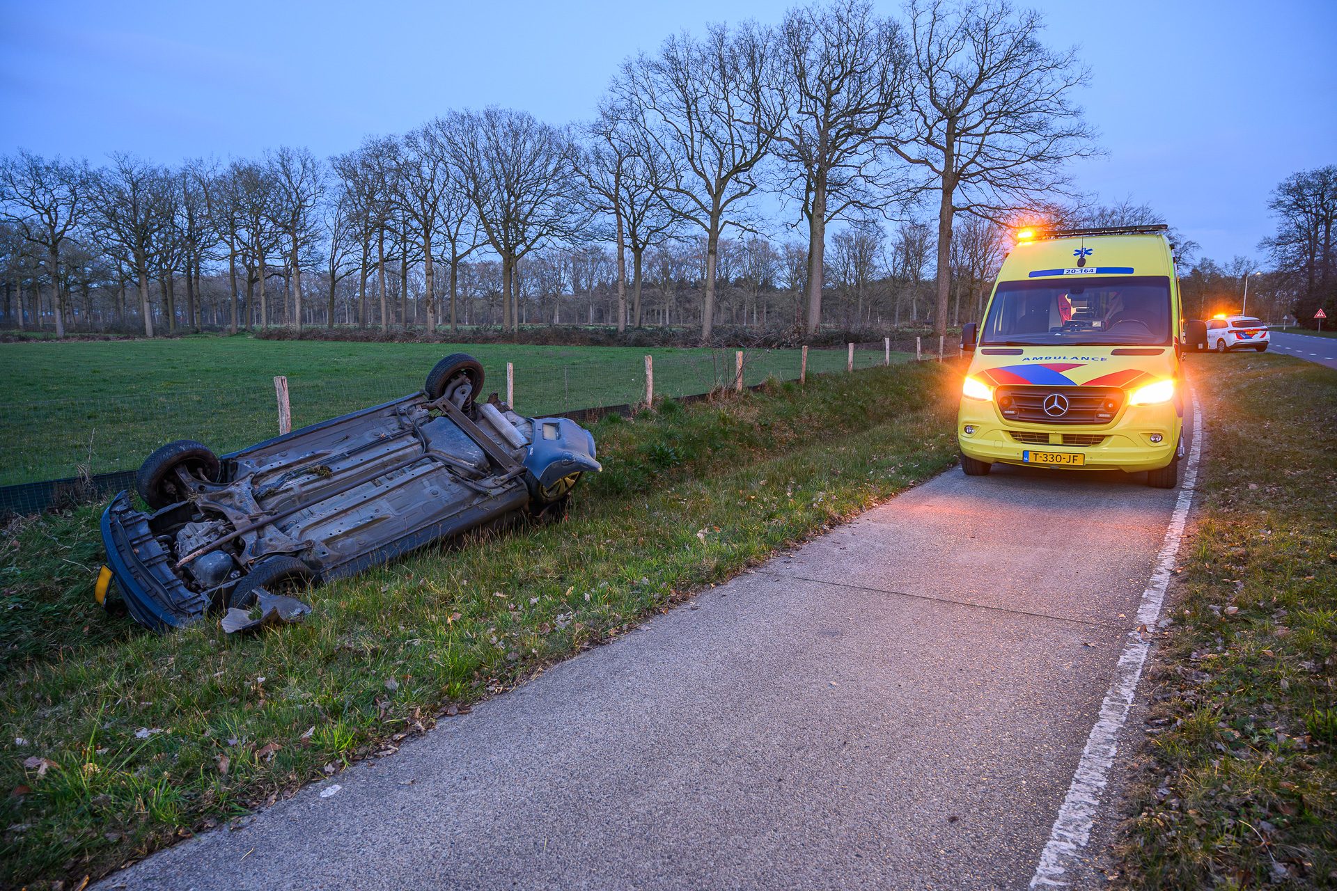 Geplaatst op 20 maart 2026, om 21:14 uurKLEIN ZUNDERT – Op de N638, de Rucphenseweg, is vrijdagavond een auto van de weg geraakt en op zijn kop in een sloot beland.