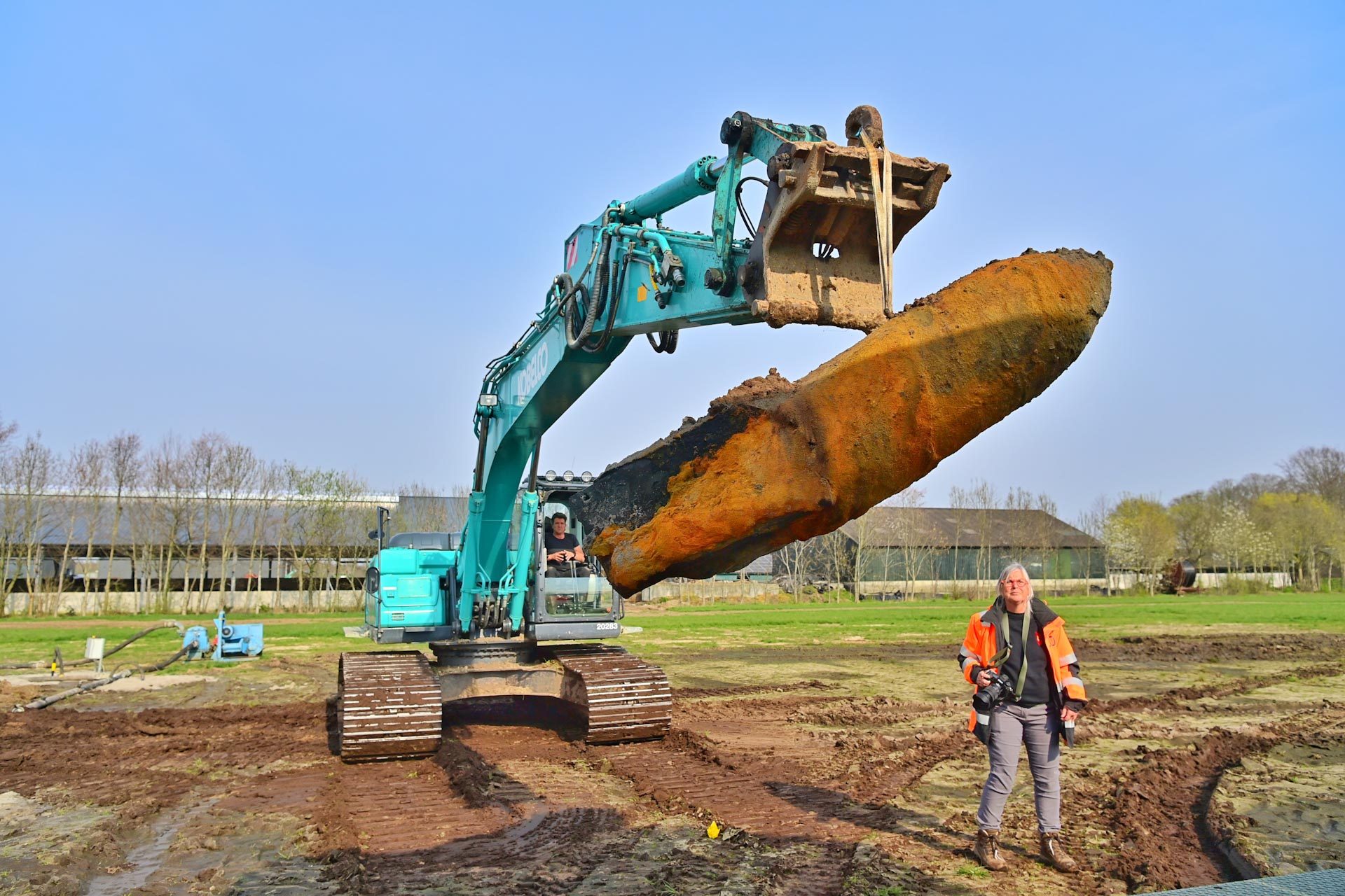 De Explosieven Opruimingsdienst Defensie (EOD) groef maandag een bom van 500 kilogram op en bracht die daarna gecontroleerd tot ontploffing. Het weiland waar de explosieven zijn aangetroffen, was in de Tweede Wereldoorlog vermoedelijk een oefen- en dumpterrein van de Duitsers.