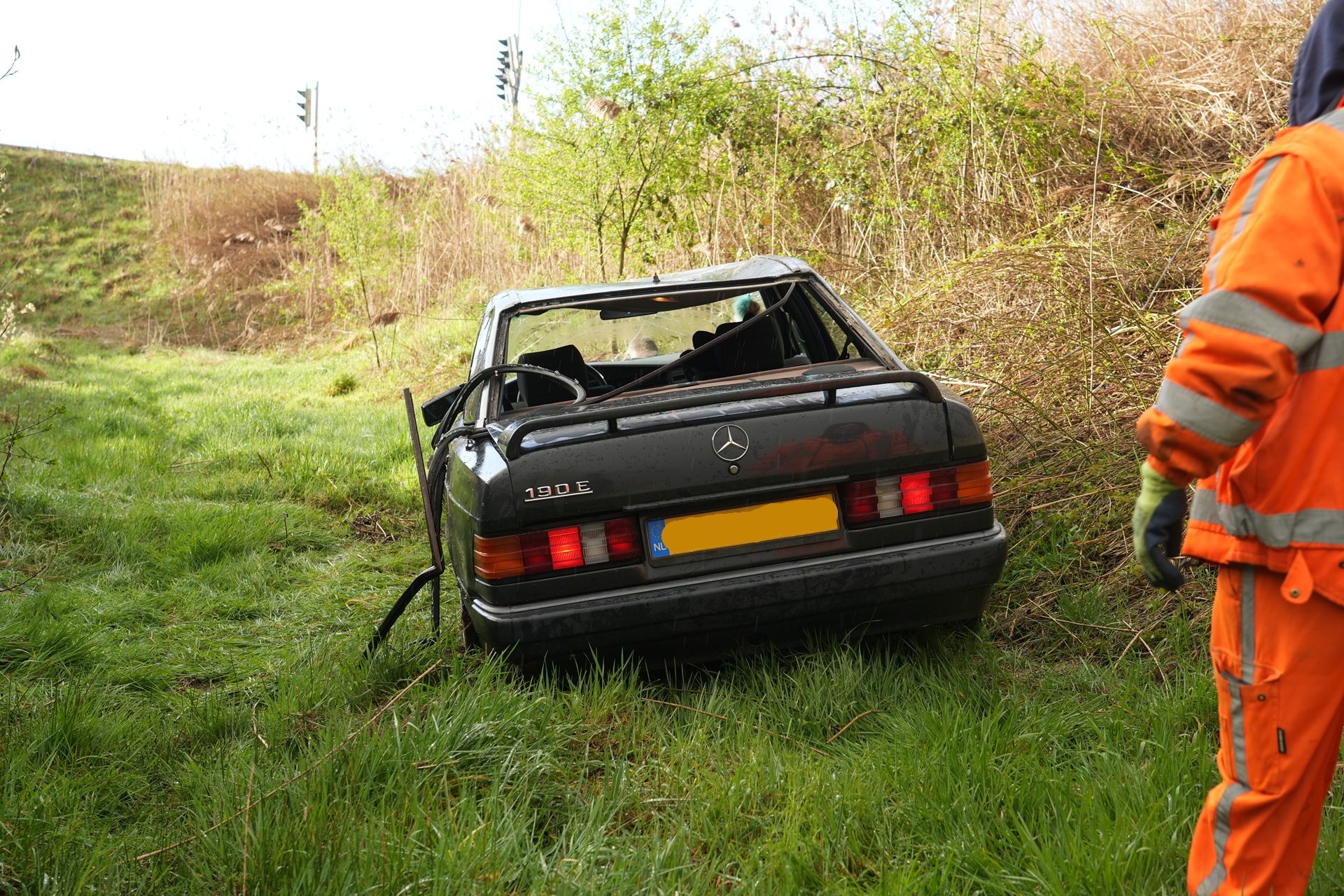 Rond 07.00 uur raakte de auto in de slip toen de bestuurder wilde afslaan. Het voertuig rolde vervolgens van het talud af en kwam lager naast de weg tot stilstand.