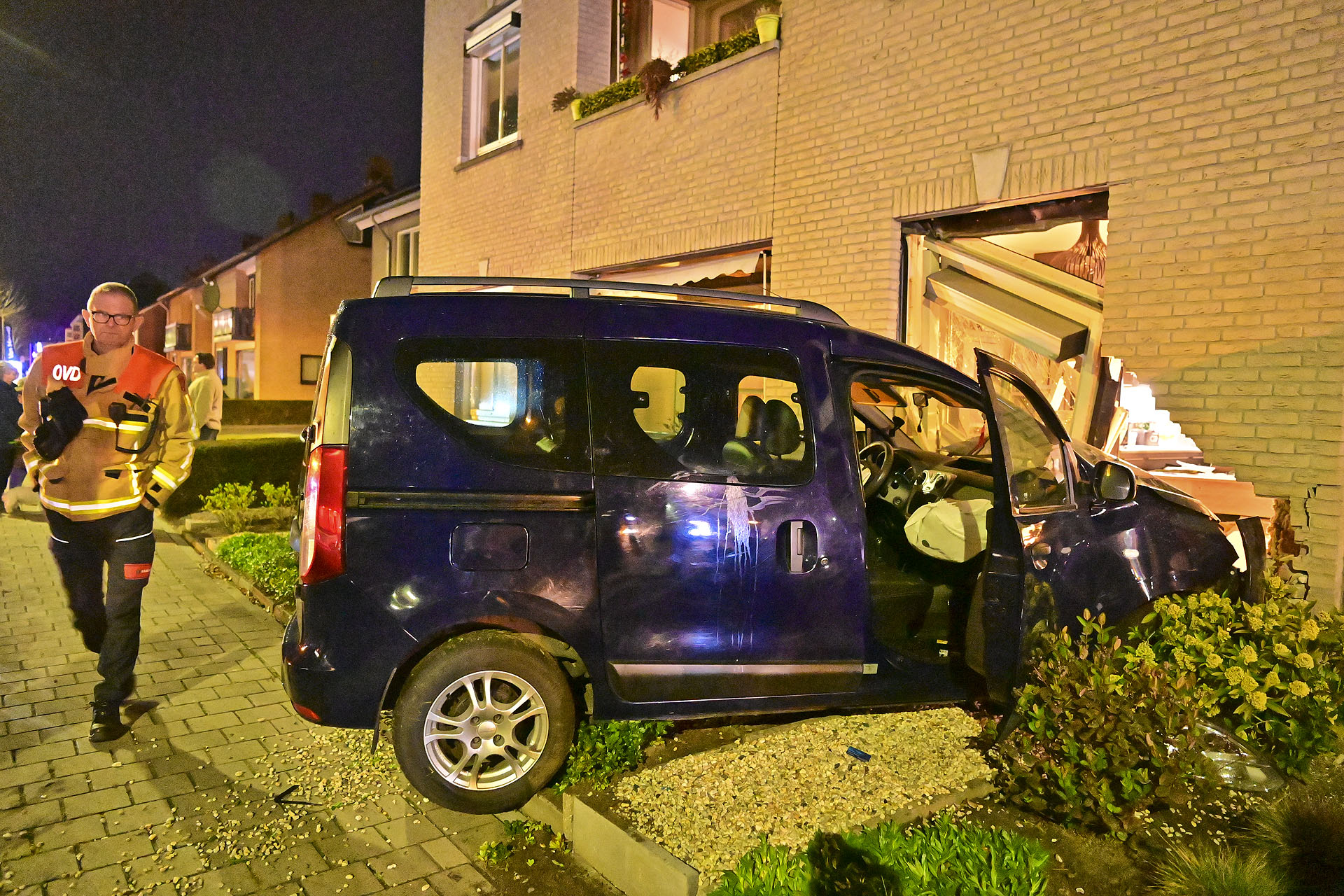 Rond 23.45 uur werden buurtbewoners opgeschrikt door een harde klap. Toen zij gingen kijken, bleek een auto in een woning tot stilstand te zijn gekomen. Bewoners haalden de inzittenden uit het voertuig. Hulpdiensten kwamen snel ter plaatse, maar er raakte niemand gewond. Volgens de politie ontstond ter plaatse onduidelijkheid over wie de auto had bestuurd. Bij één van de mannen werden de autosleutels in een broekzak aangetroffen. Hij is meegenomen naar het bureau voor verder onderzoek, onder meer naar rijden onder invloed.