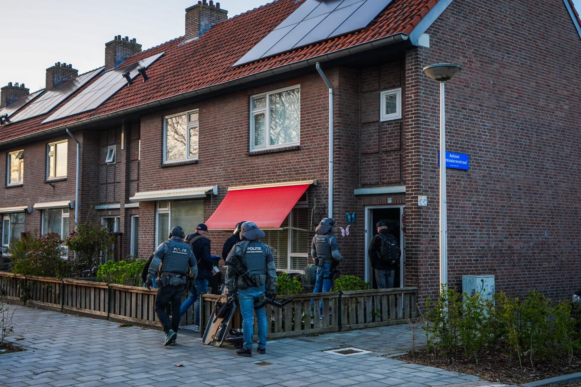 De inval vond plaats in de avonduren. Agenten, gekleed in zwarte jassen, gingen na het forceren van de deur de woning binnen en doorzochten het pand. Daarbij werd onder meer gezocht naar elektronische apparatuur, zoals telefoons en laptops. Later op de avond arriveerde een gespecialiseerd bedrijf voor het vervoeren van gevaarlijke stoffen bij de woning. Buurtbewoners melden dat er vuurwerk is meegenomen.