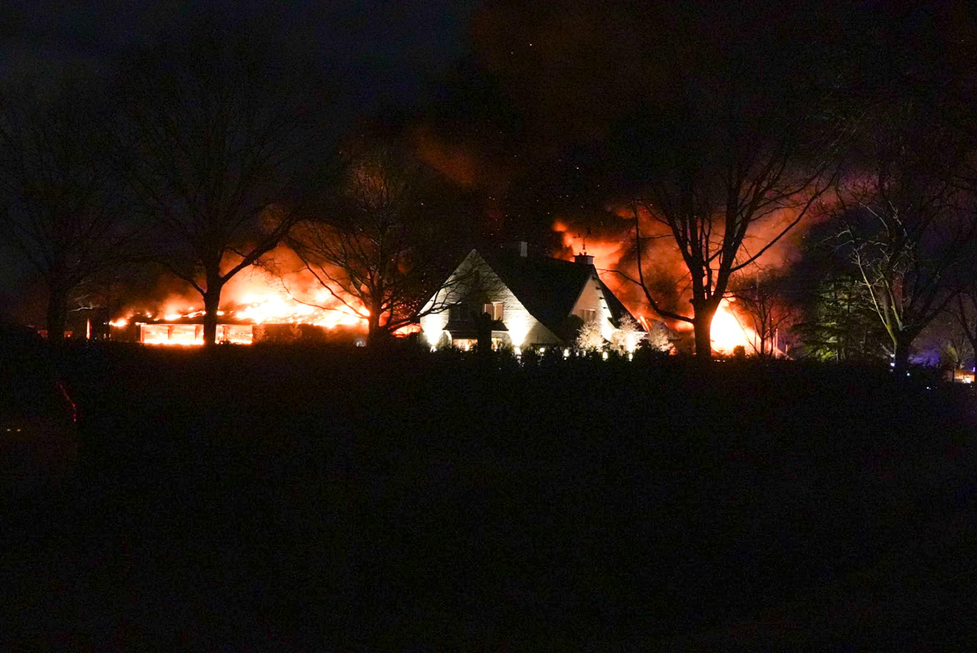 Zeer grote brand in loods met vrachtwagens