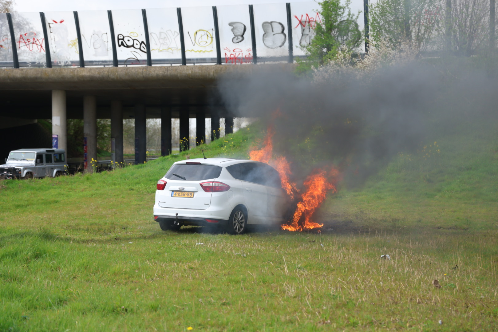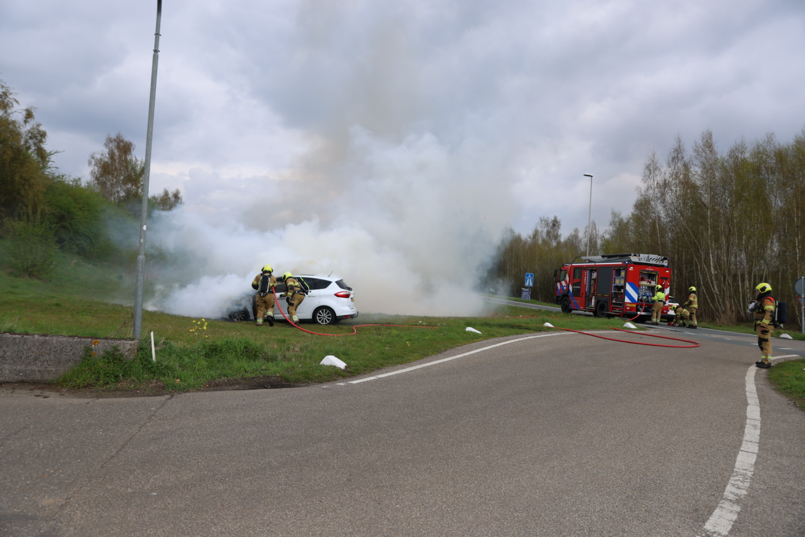 De melding kwam in de middag binnen, waarna de brandweer het vuur bluste. Door het incident werd de oprit tijdelijk afgesloten voor het verkeer. Over de oorzaak van de brand is niets bekend. Het voertuig liep zware schade op en moet als verloren worden beschouwd.