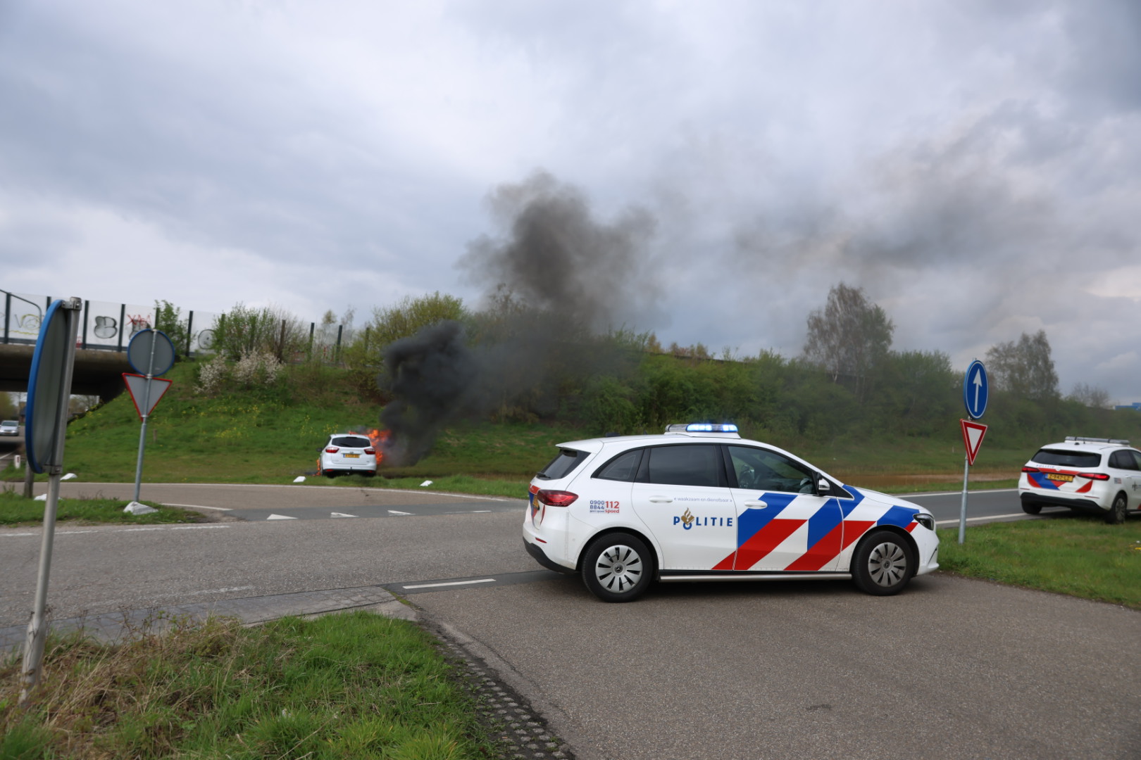Auto brandt uit op oprit snelweg, bestuurder mee naar politiebureau