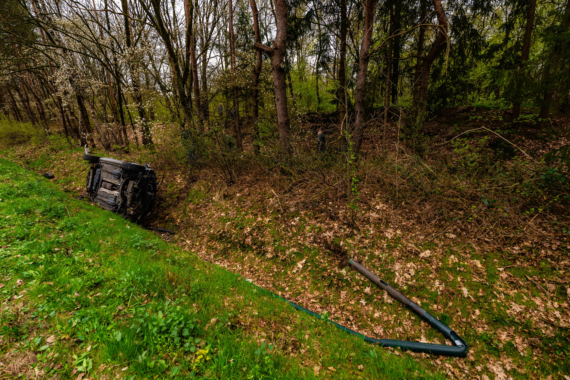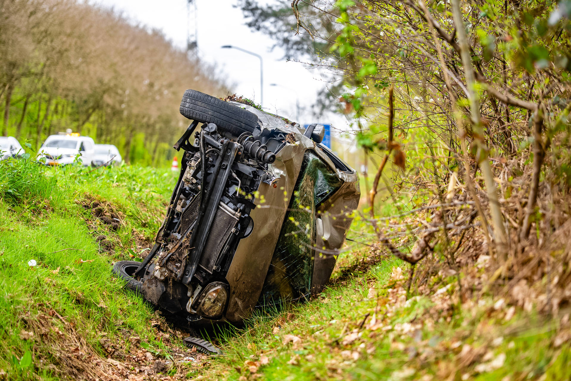 De bestuurder is wel aangehouden. Waarom dat is gebeurd, is nog niet bekend. Een bergingsbedrijf heeft de auto later weggesleept.