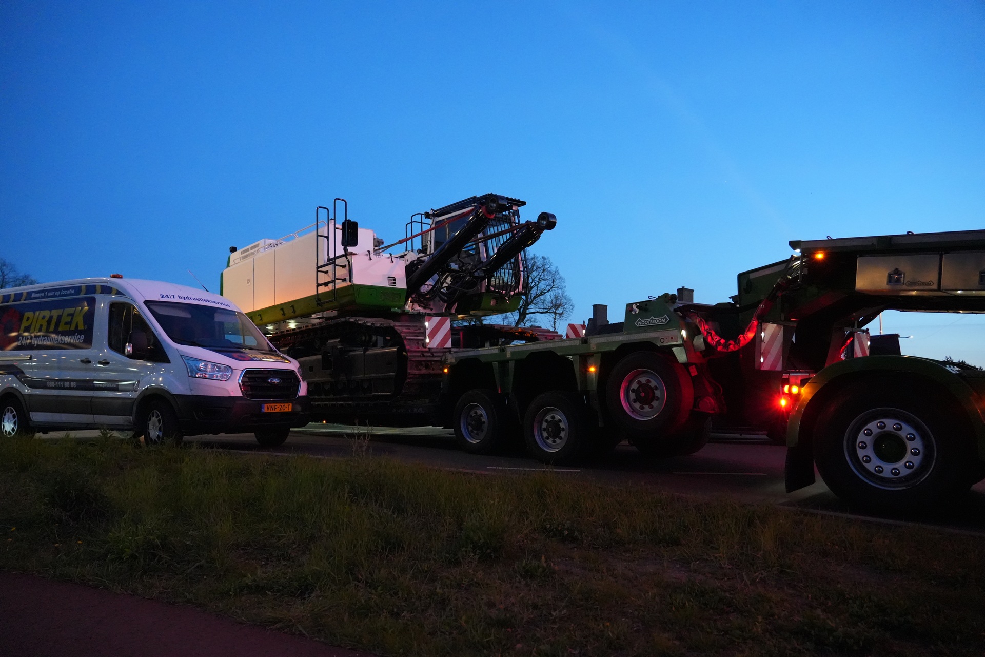 Geplaatst op 8 april 2026, om 21:46 uurRIJEN – Woensdagavond blokkeerde een speciaal transport met daarop een graafmachine van ruim 100 ton enkele uren de rotonde aan de Oosterhoutseweg in Rijen.
