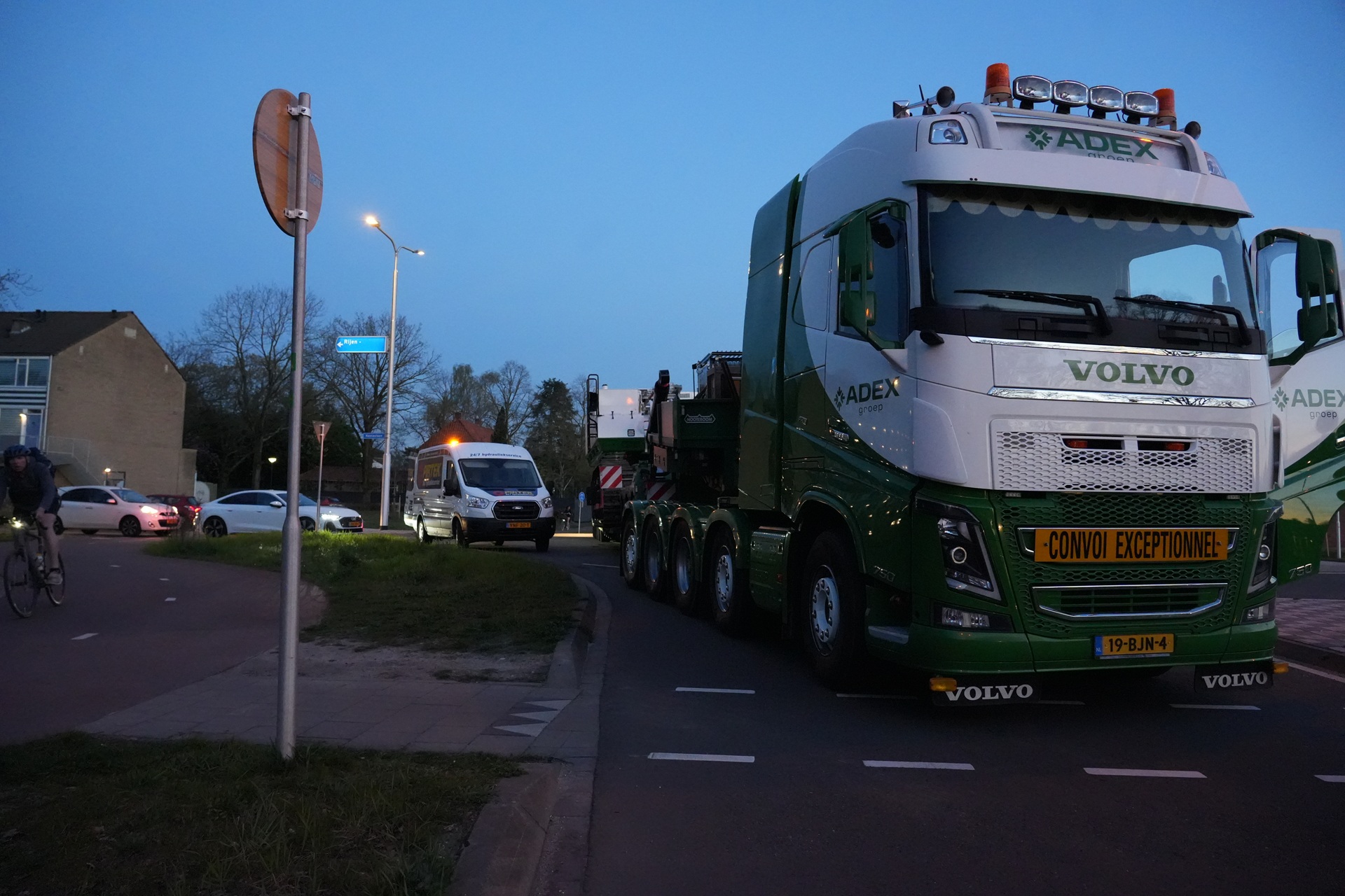 Geplaatst op 8 april 2026, om 21:46 uurRIJEN – Woensdagavond blokkeerde een speciaal transport met daarop een graafmachine van ruim 100 ton enkele uren de rotonde aan de Oosterhoutseweg in Rijen.