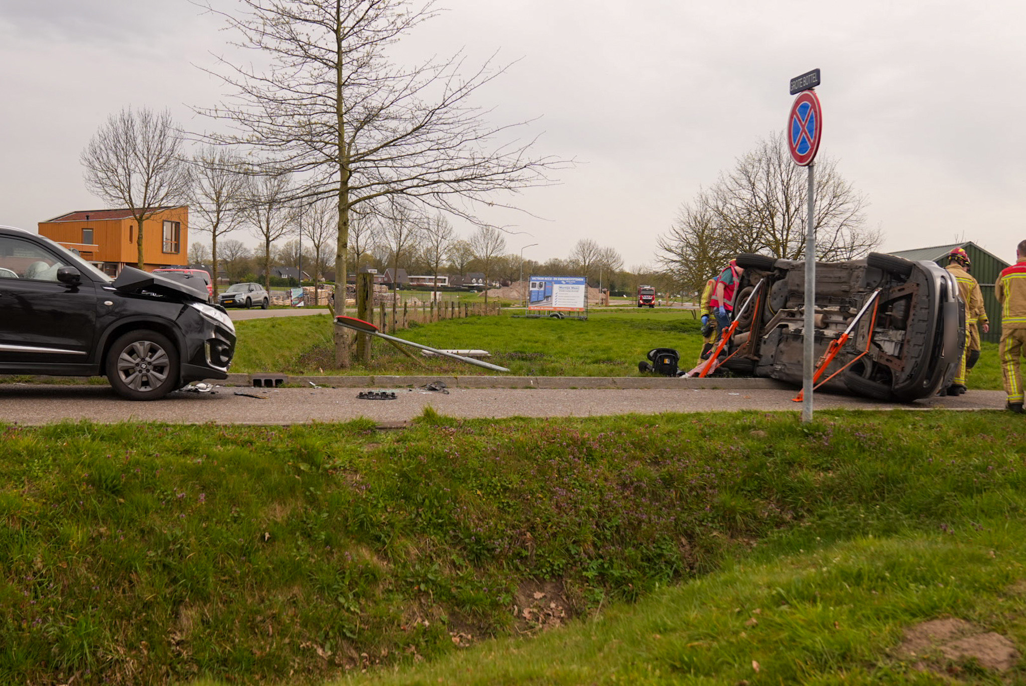 Beide auto’s raakten flink beschadigd. Eén van de auto’s kantelde op de weg. Het is niet bekend in welke auto de kinderen zaten.