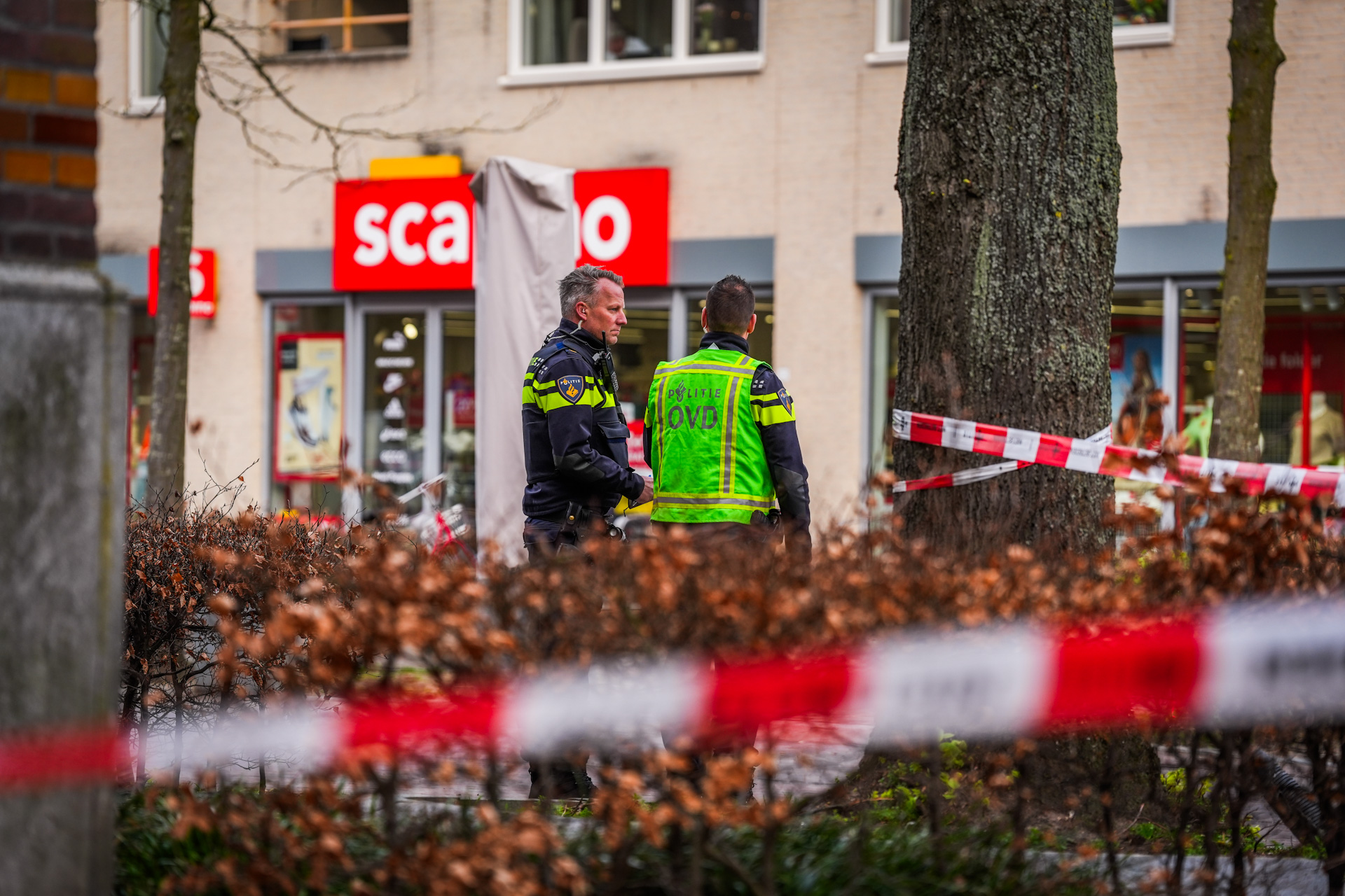 De verdachte is na het incident gevlucht. De politie is naar hem op zoek en heeft de winkelstraat ruim afgezet voor sporenonderzoek.
