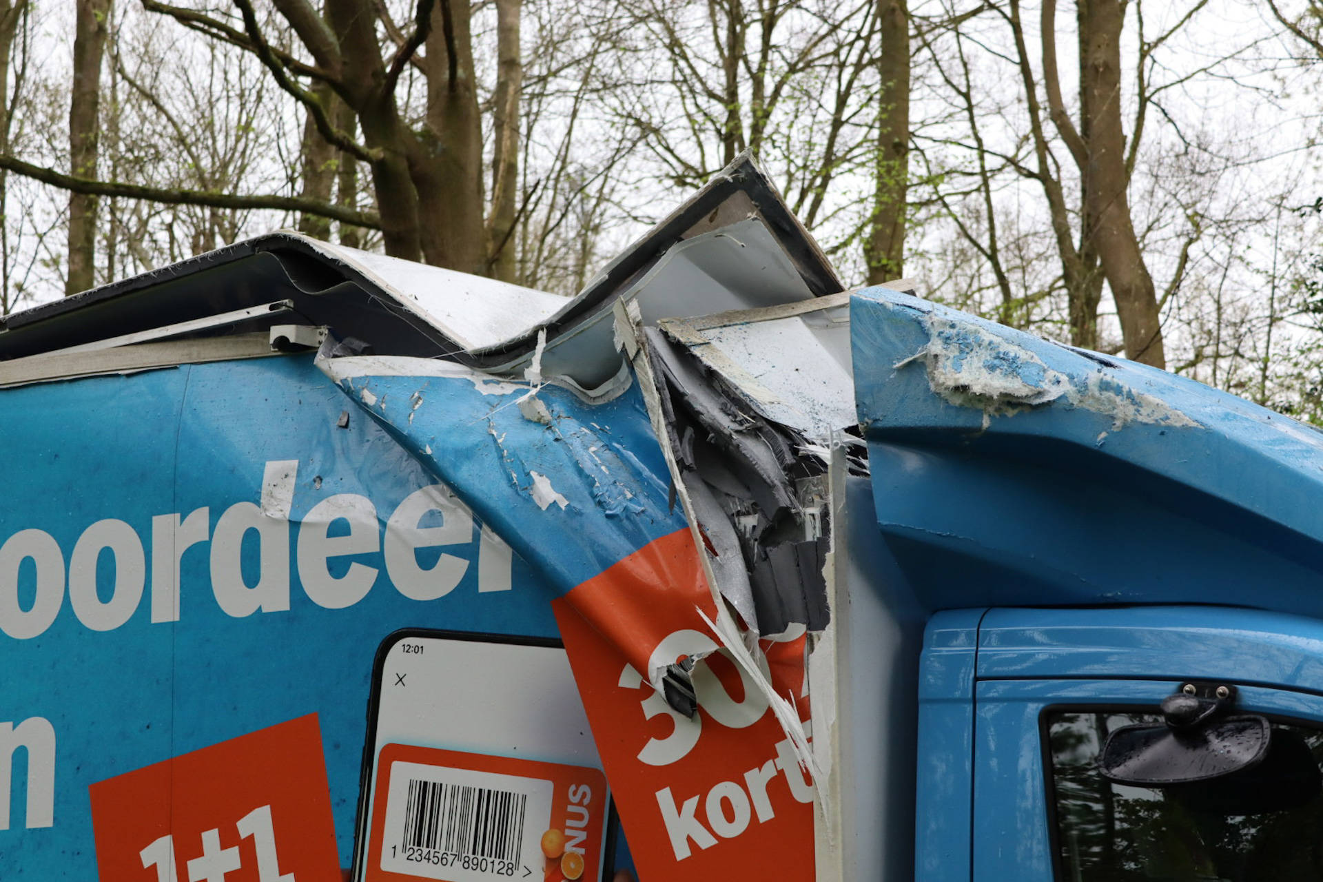Bakwagen zwaar beschadigd bij botsing met viaduct