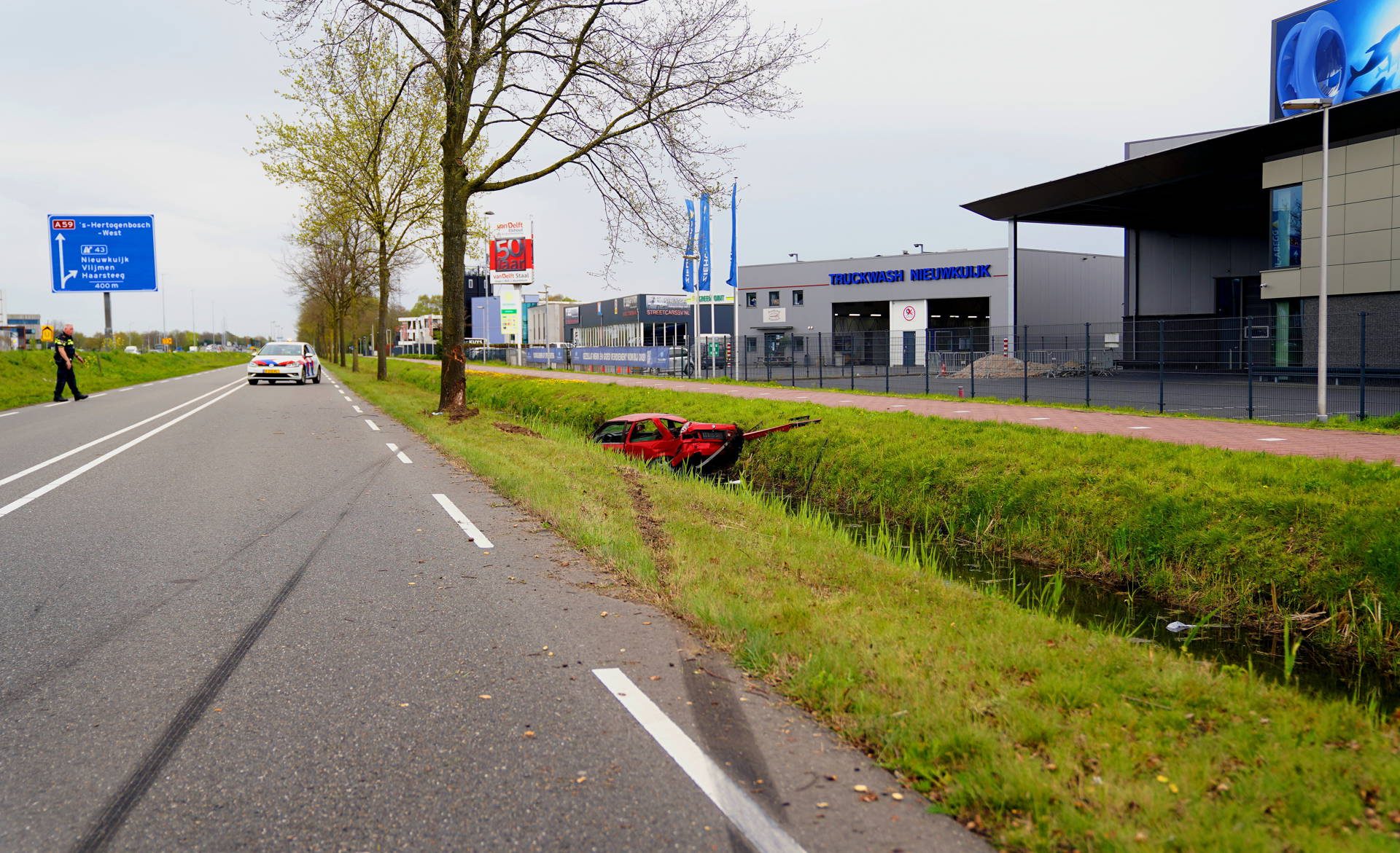 Geplaatst op 11 april 2026, om 18:54 uurNIEUWKUIJK – Een bestuurder is zaterdagmiddag gewond geraakt bij een verkeersongeval op de Spoorlaan in Nieuwkuijk. De auto raakte van de weg, botste tegen een boom en kwam uiteindelijk in een sloot tot stilstand.