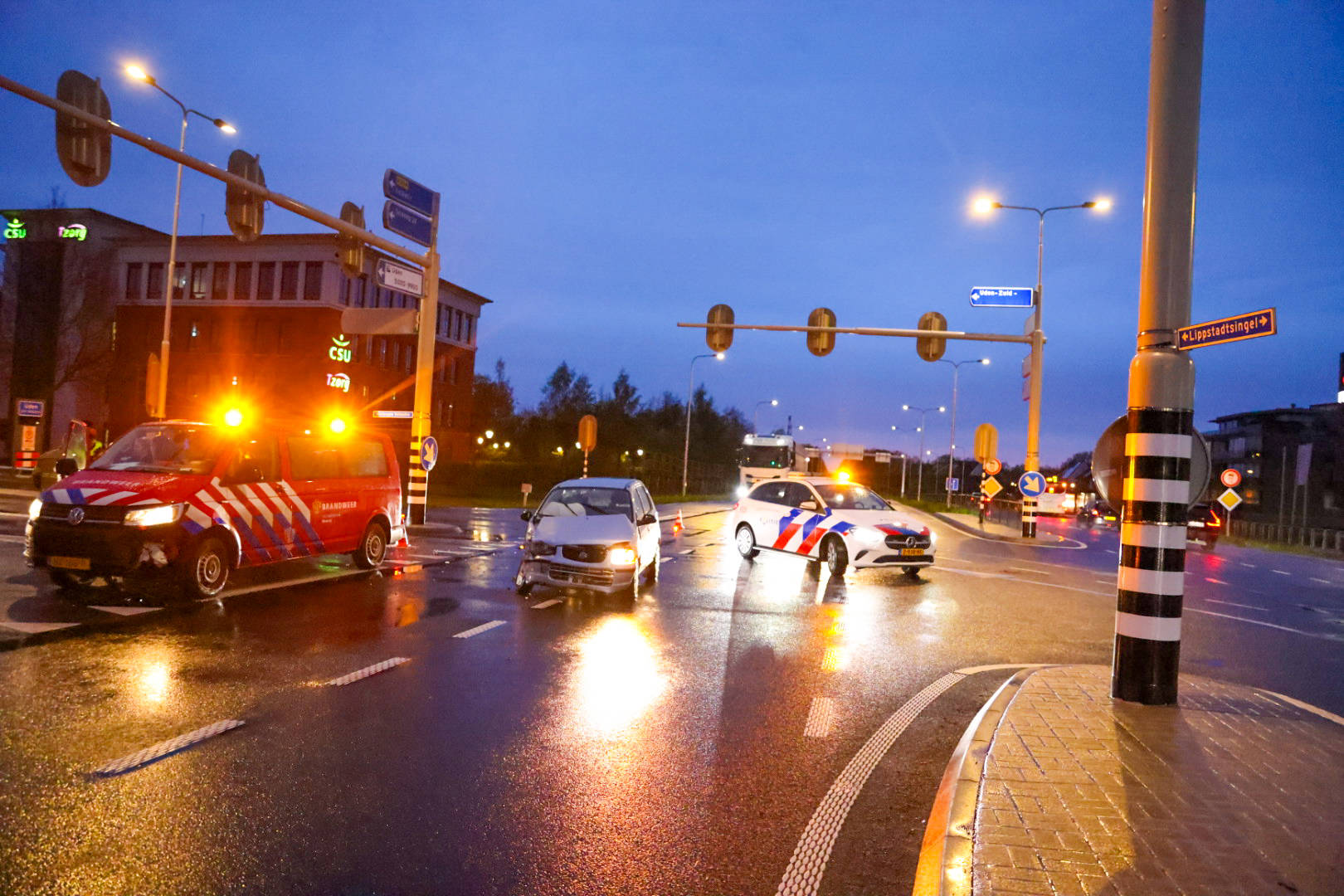 Geplaatst op 11 april 2026, om 22:49 uurUDEN – Op de Lippstadsingel in Uden is zaterdagavond een ongeval gebeurd, waarbij ook een brandweervoertuig betrokken was. Het ongeval vond plaats op het kruispunt met de Velmolenweg richting Volkel.
