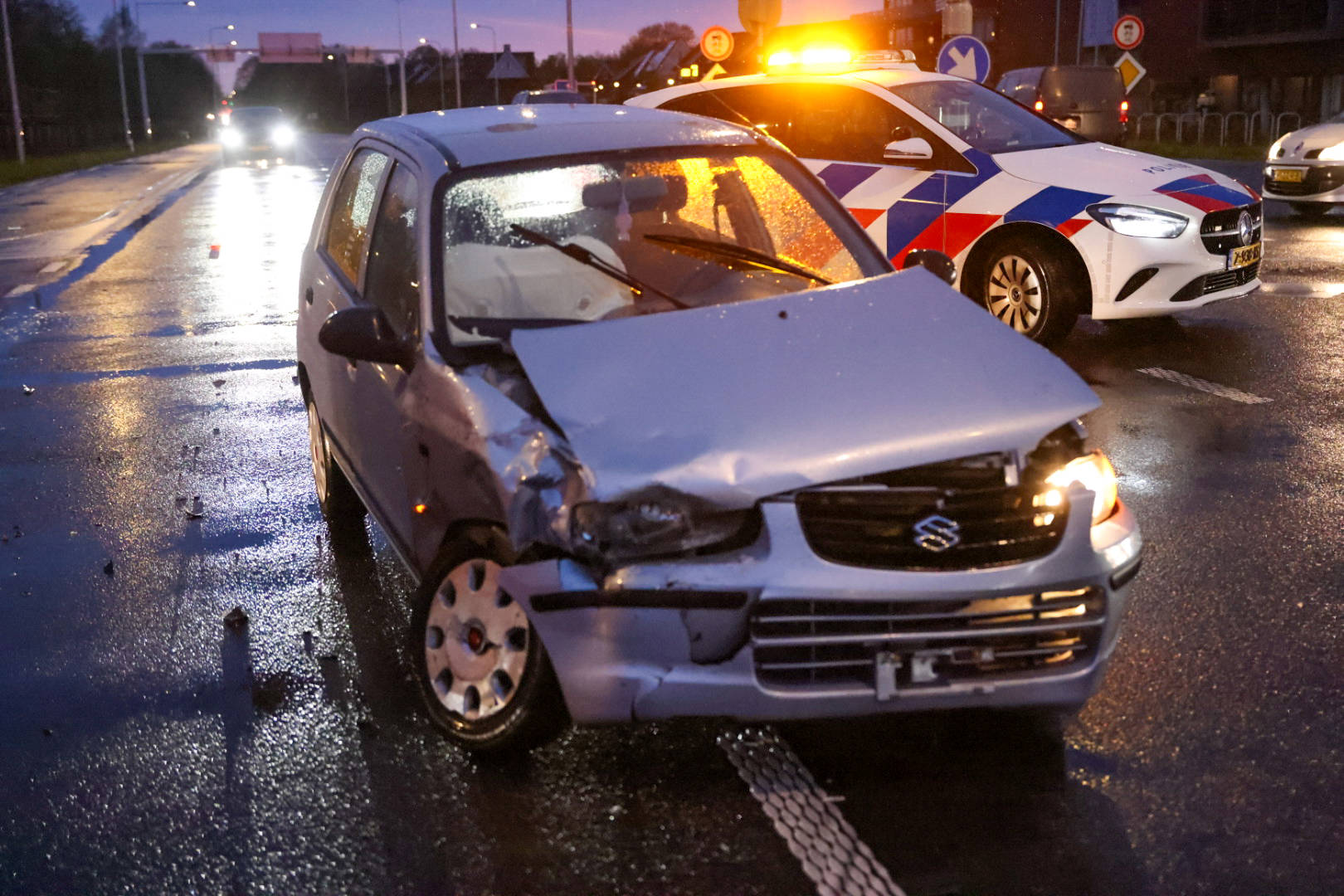 Voor zover bekend raakte niemand gewond. Het kruispunt was tijdelijk deels afgesloten vanwege het ongeval.