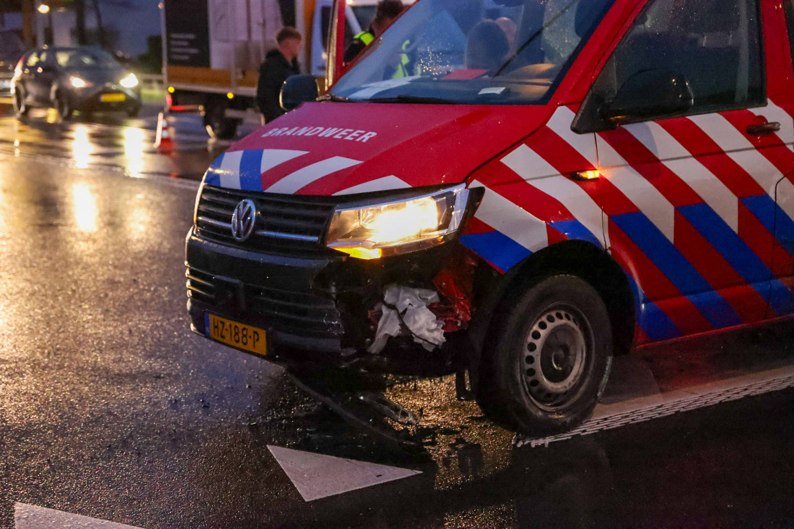 Veel schade na botsing met brandweervoertuig