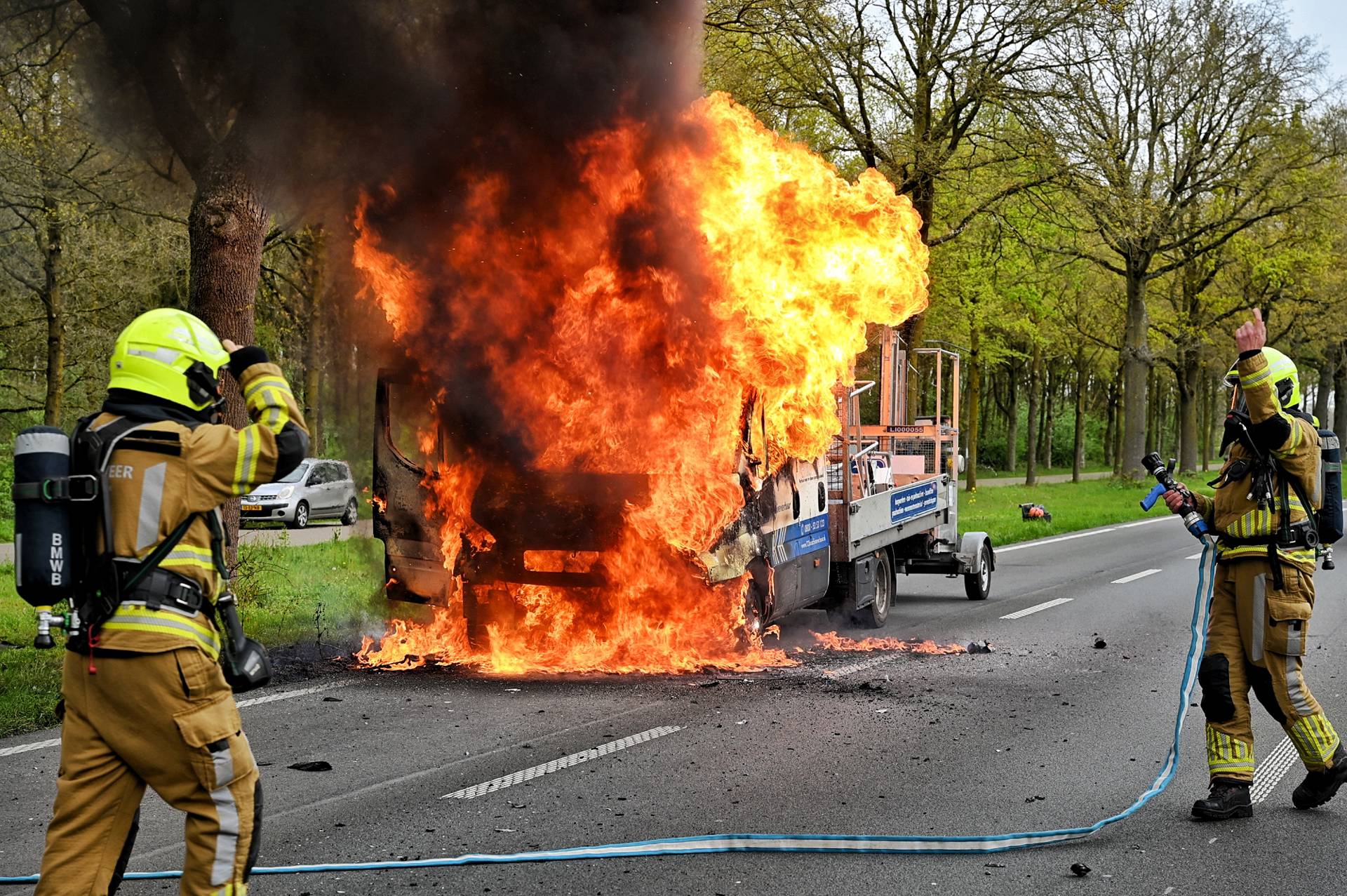 Niet veel later vatte het voertuig vlam. De twee mannen konden de bestelbus op tijd verlaten, waarna de vlammen snel uitsloegen. De N65 is volledig afgesloten voor het verkeer.