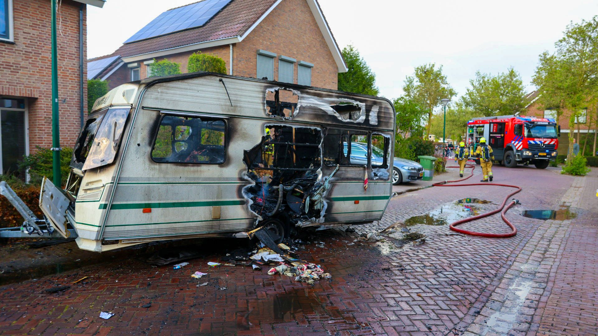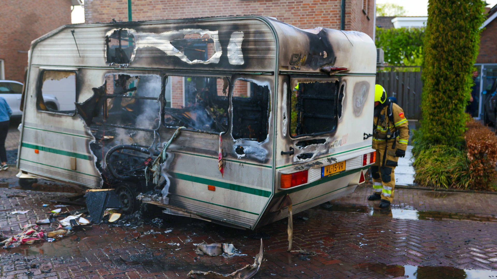 De brandweer was snel ter plaatse, maar kon de caravan niet meer redden. Wel kon het voertuig op tijd van de oprit worden geduwd om verdere schade te voorkomen. De rook was in de wijde omgeving te zien.