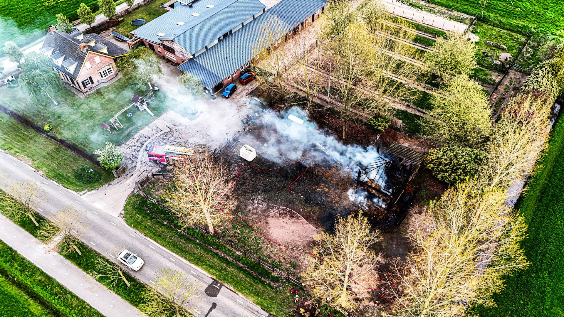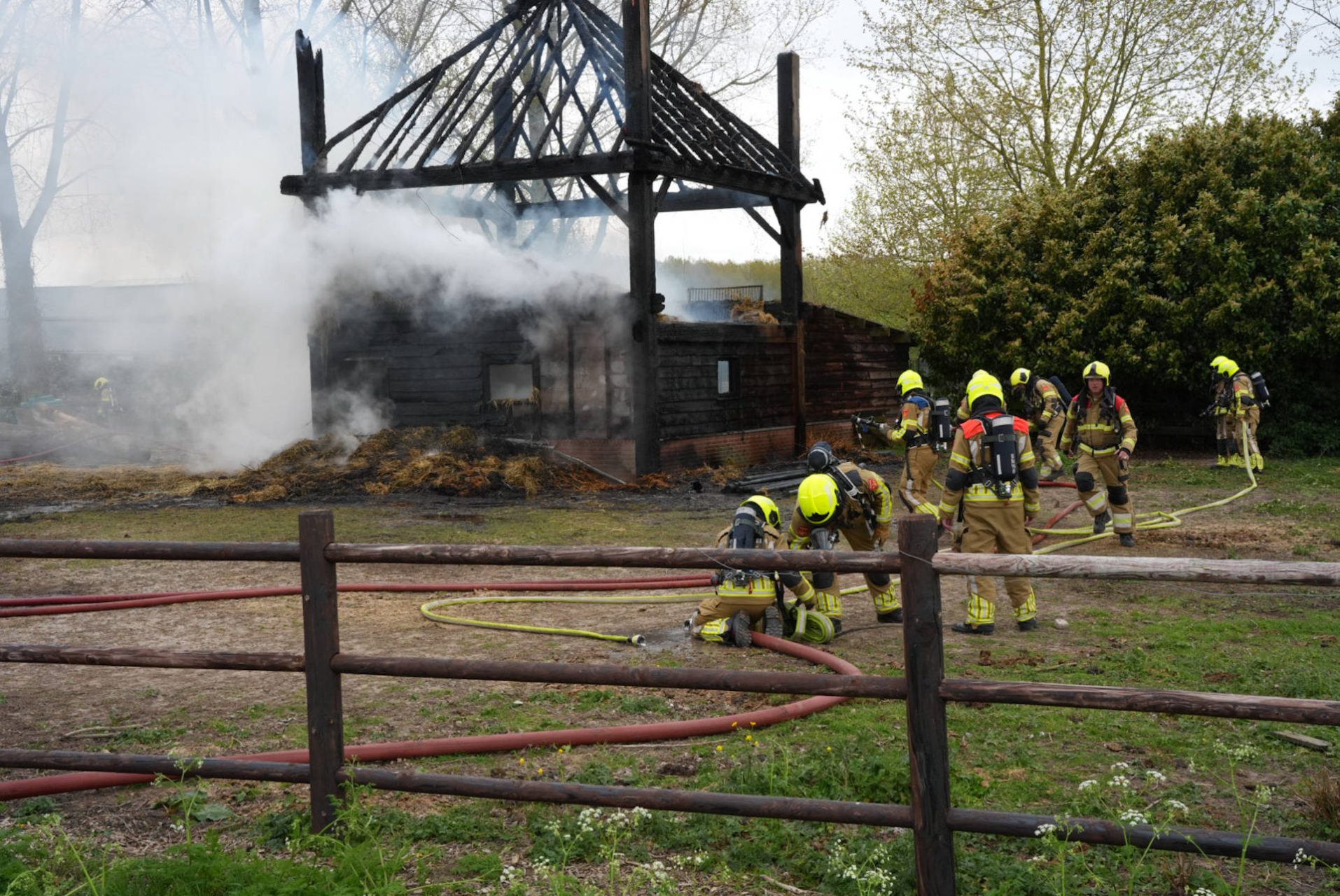 Op dit moment zijn nog twee tankautospuiten bezig met nabluswerkzaamheden. De hooiberg zal waarschijnlijk volledig uit elkaar gehaald moeten worden om alle smeulende resten goed te kunnen doven. De Polderweg is volledig afgesloten voor het verkeer.