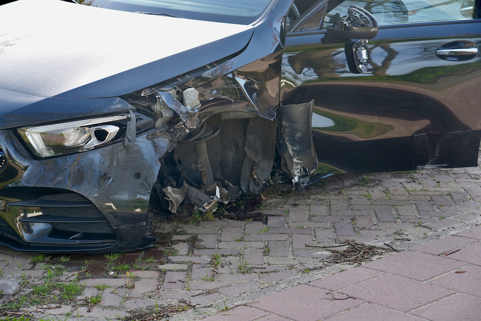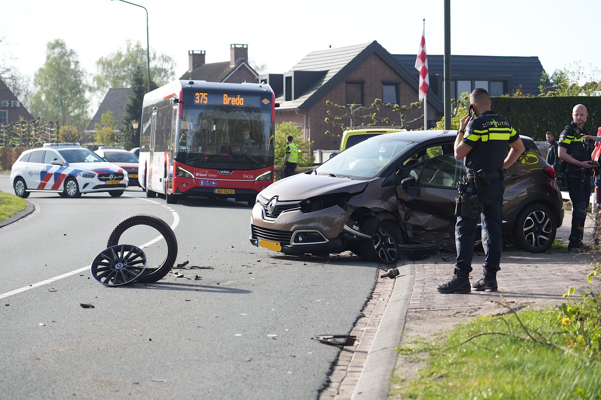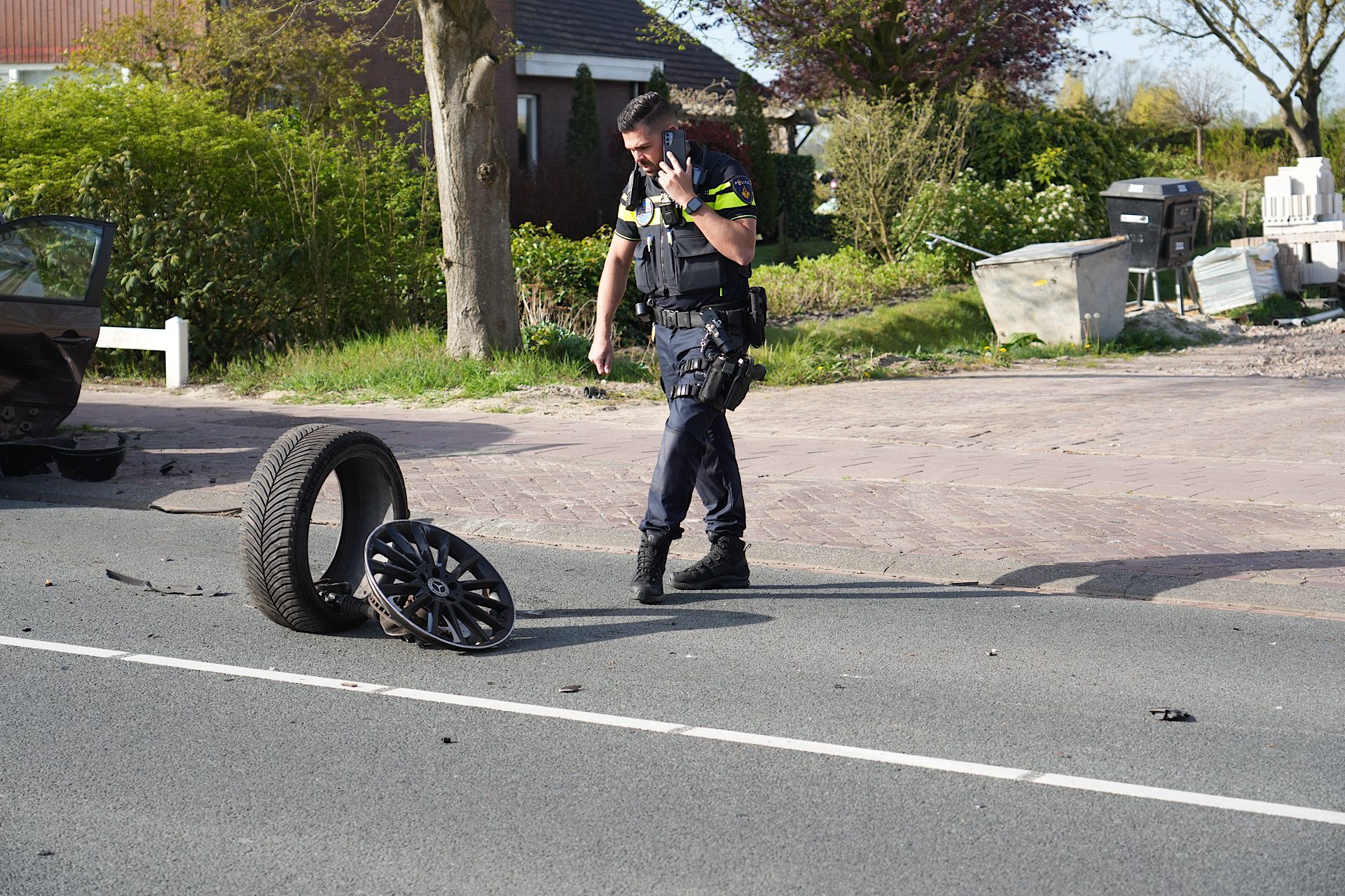 Door de klap brak van een van de voertuigen een wiel af. Beide auto’s kwamen pas tientallen meters verderop tot stilstand. Een oudere man is in een ambulance behandeld, maar hoefde niet mee naar het ziekenhuis.