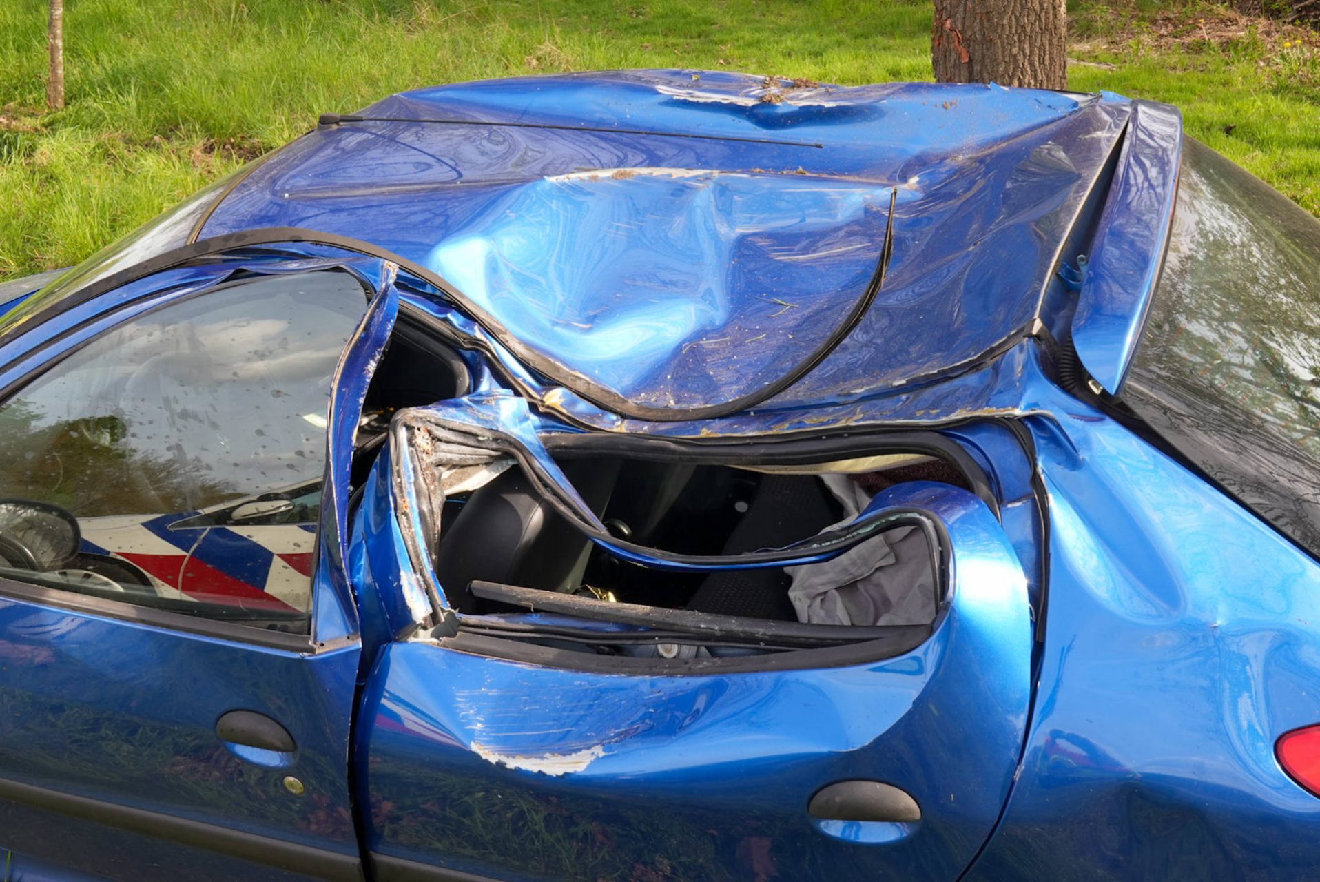De auto botste tegen een boom en kwam op de zijkant tot stilstand. De brandweer heeft het voertuig weer rechtgezet. Ambulancepersoneel heeft de bestuurster gecontroleerd, maar zij hoefde niet mee naar het ziekenhuis.