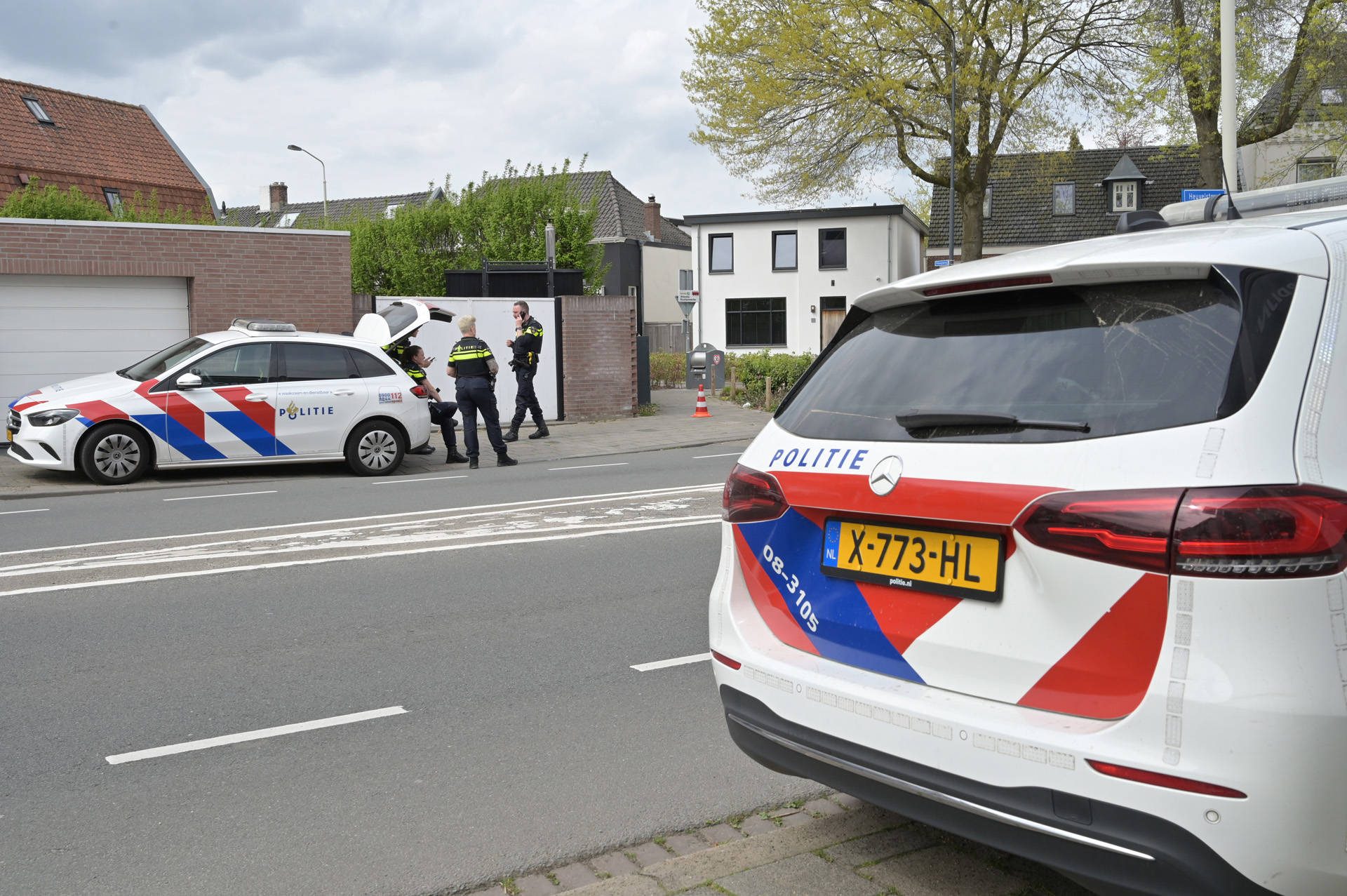 Rond 17.00 uur deed de politie met een hond onderzoek in de bosjes in de straat. Wat aan de bedreiging voorafging, is nog niet duidelijk.