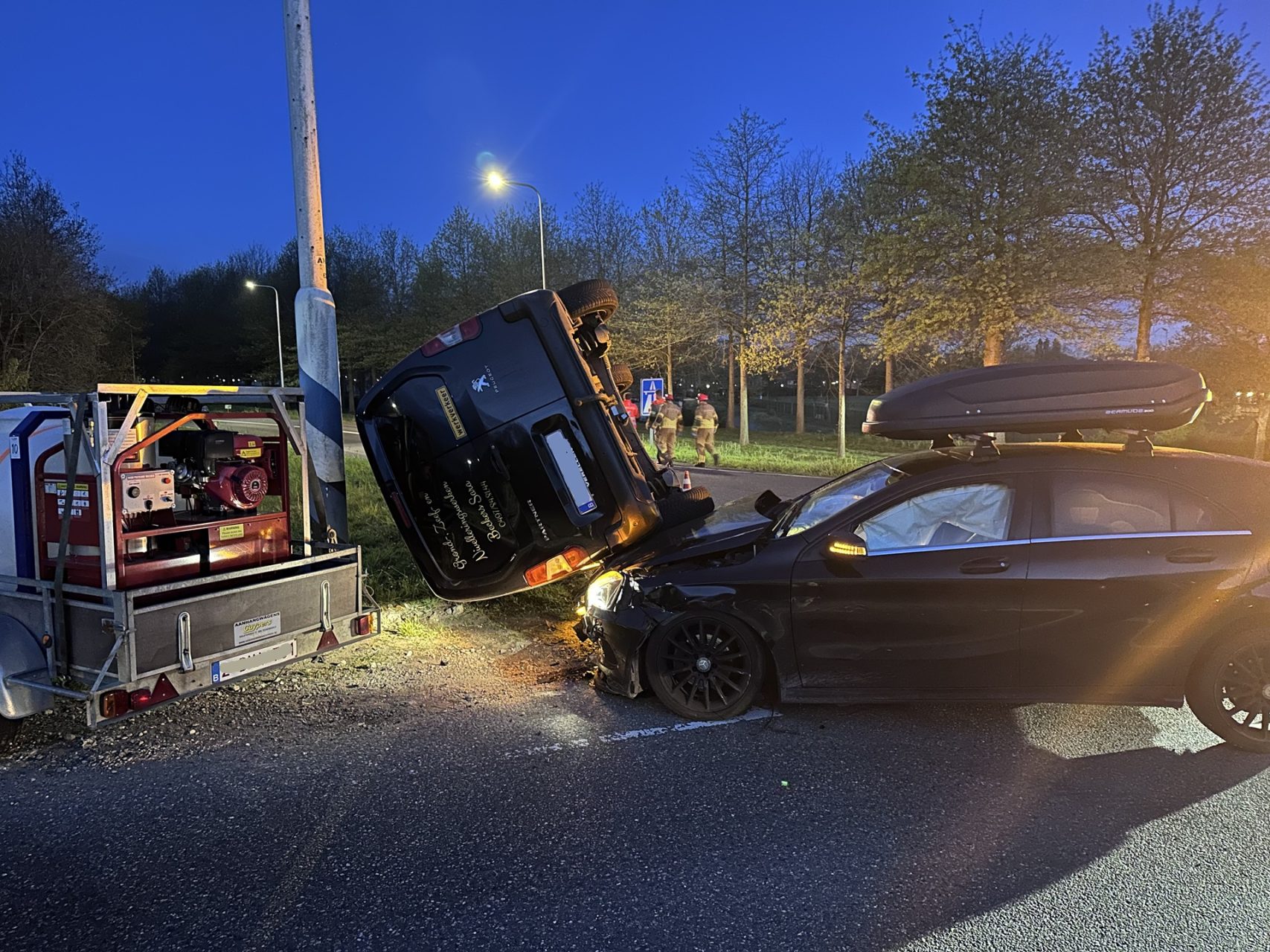 Door de aanrijding kwam het busje op zijn zijkant tegen een verkeerspaal tot stilstand. Twee personen zijn in een ambulance gecontroleerd. Eén van hen is met onbekend letsel naar het ziekenhuis gebracht.