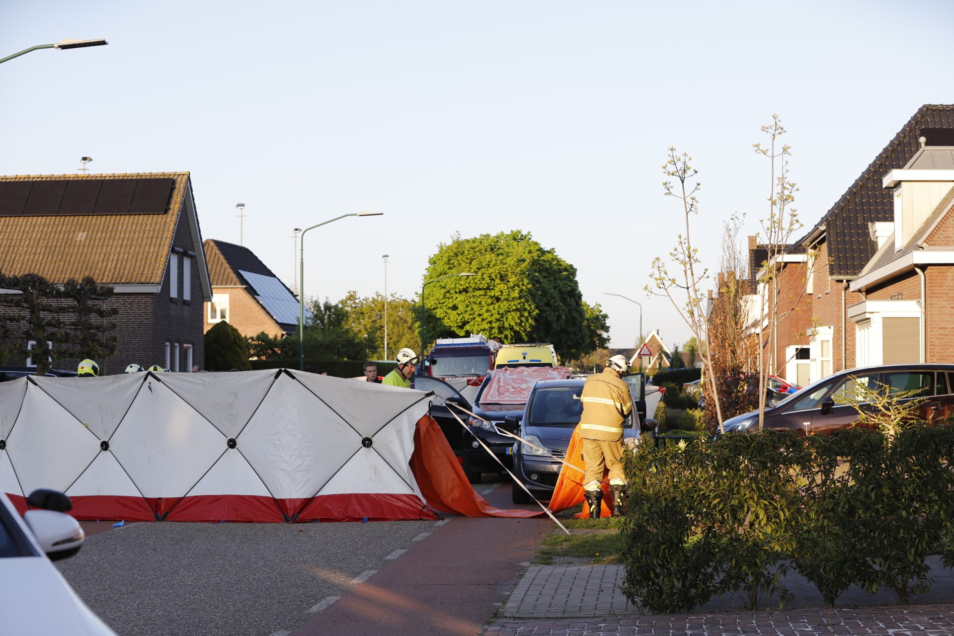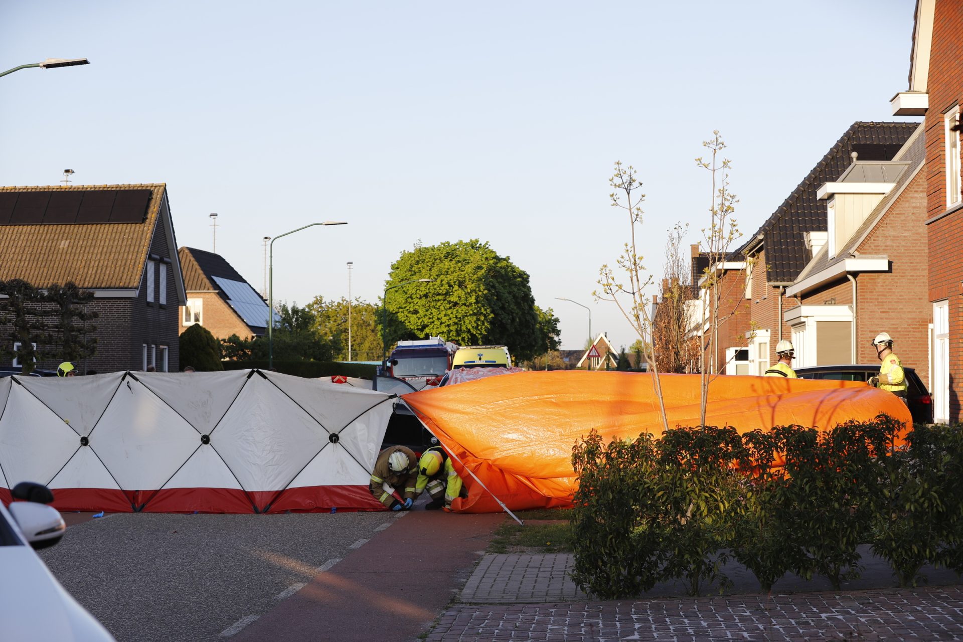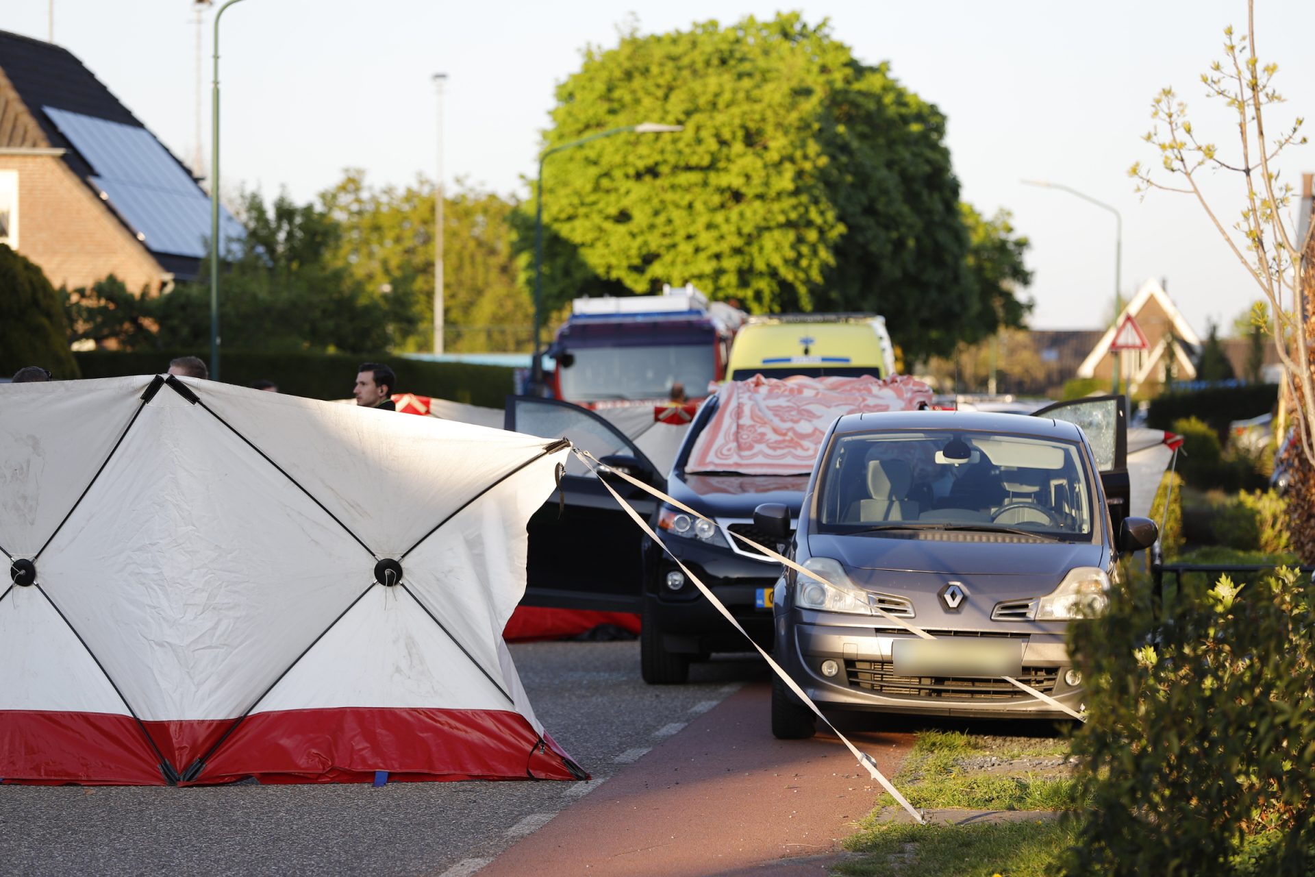 Op de locatie ligt een deken over een auto. Ook zijn de ruiten van het voertuig kapot. De politie is aanwezig met zware vesten en heeft de weg volledig afgezet. Daarnaast worden schermen geplaatst rondom de plek van het incident.