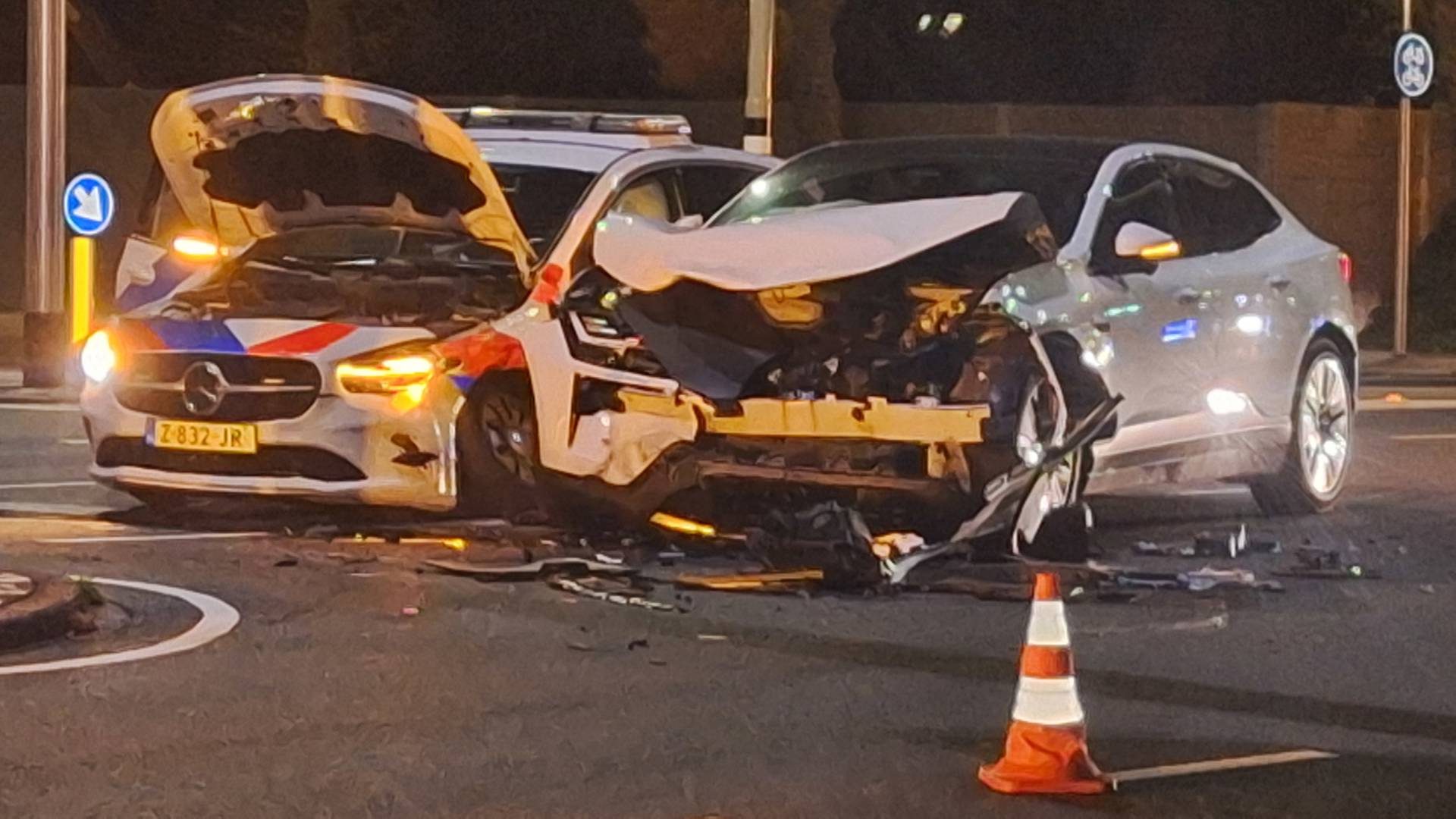 BERGEN OP ZOOM – Een personenauto en een politievoertuig zijn dinsdagavond op elkaar gebotst op de Randweg-West in Bergen op Zoom.