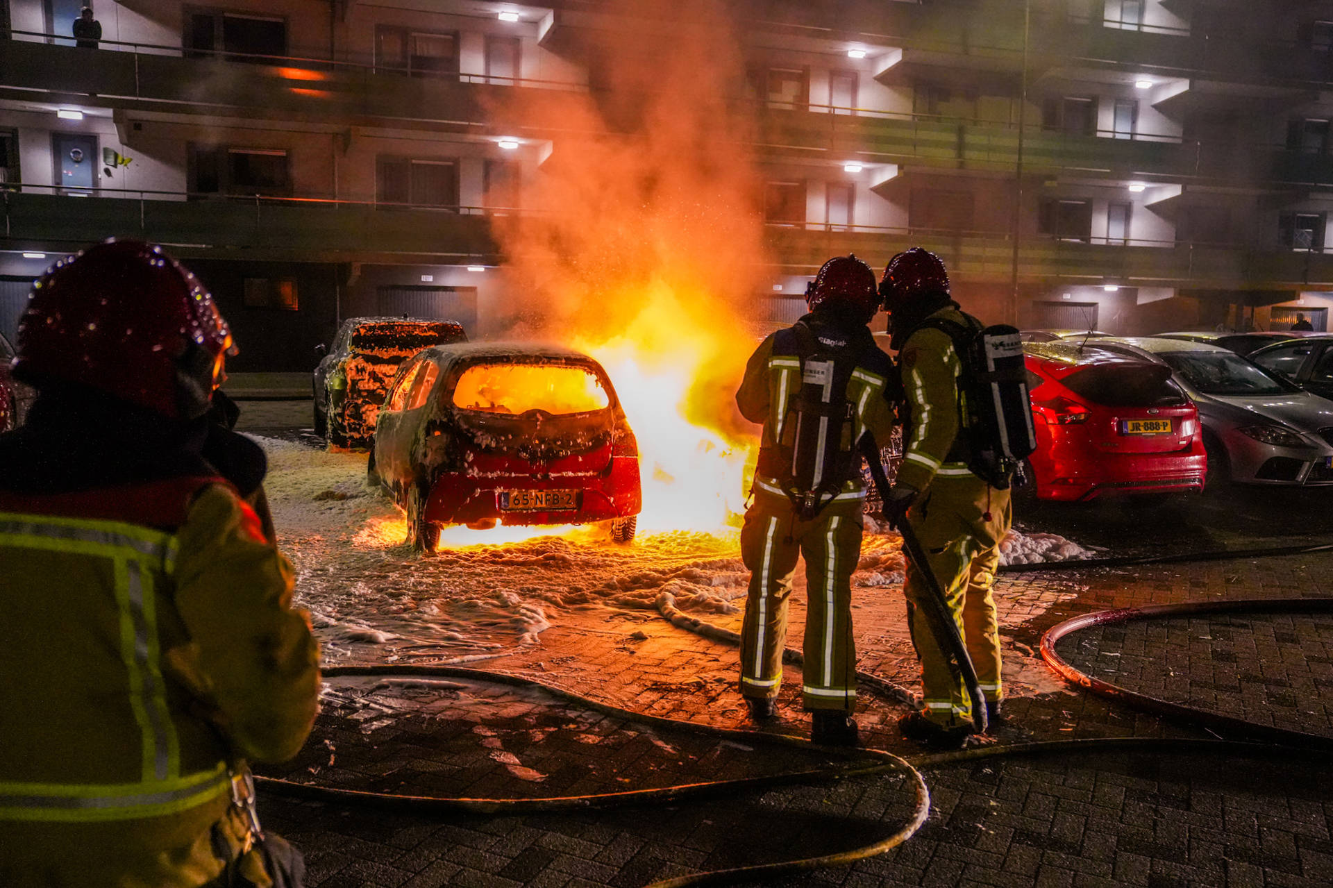 In Geldrop, aan de Admiraal Byrdstraat, gingen drie auto’s verloren. De brandstoflekkage van een van de voertuigen zorgde ervoor dat het vuur telkens weer oplaaide.